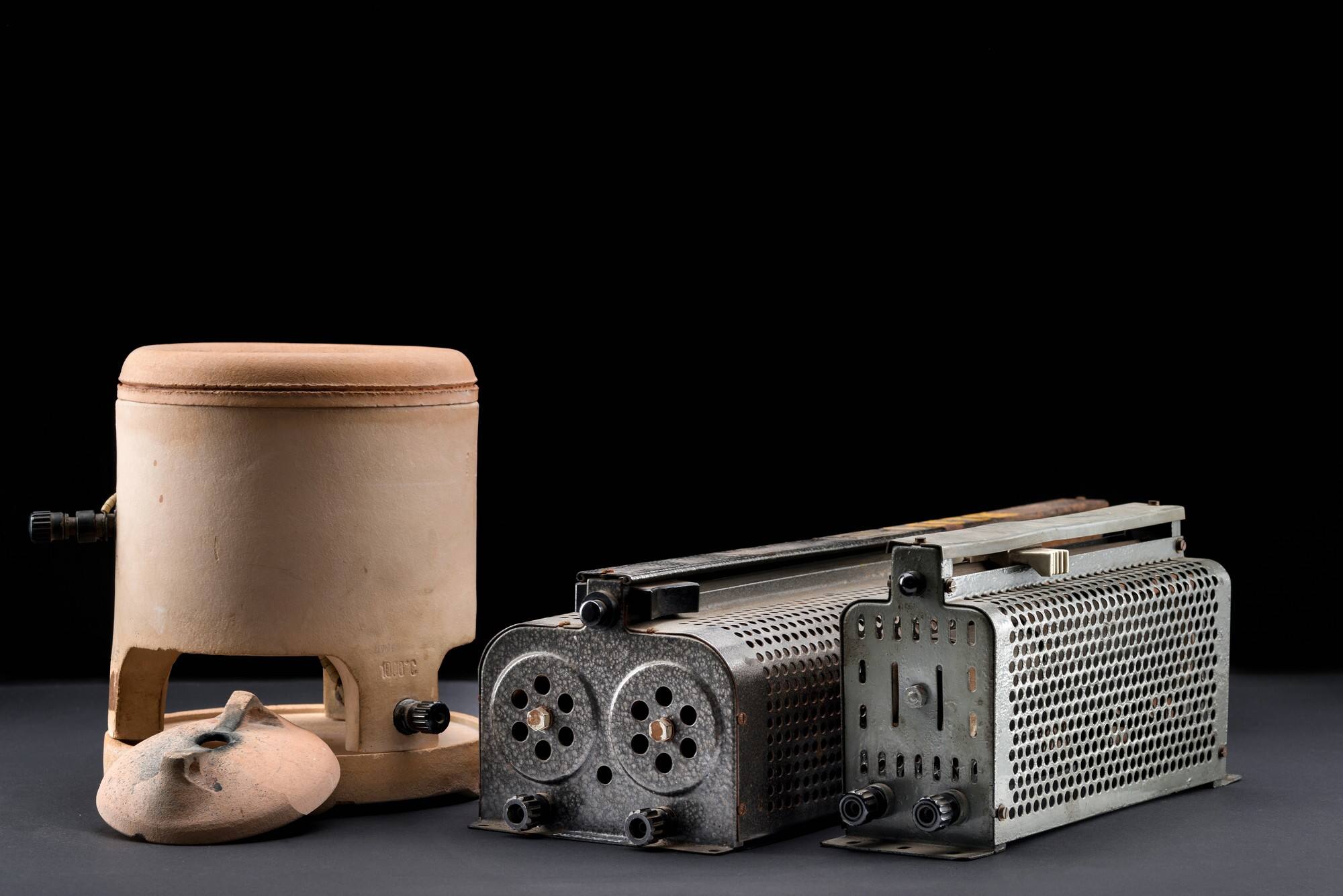 Dafür entwickelten sie ein spezielles Hartporzellan, das bis 1300°C nur vernachlässigbar elektrisch leitend wird. Umwickelt mit einem Heizdraht bildet es einen tiegelförmigen Heizkörper, der von dem Heizkörperfuß getragen wird und umhüllt ist mit einem Mantel aus Schamott, feuerfestem Steinmaterial. Bei Bewicklung mit Platin-, Wolfram- und Molybdändrähten konnten sogar Temperaturen von bis zu 1900°C erzielt werden.