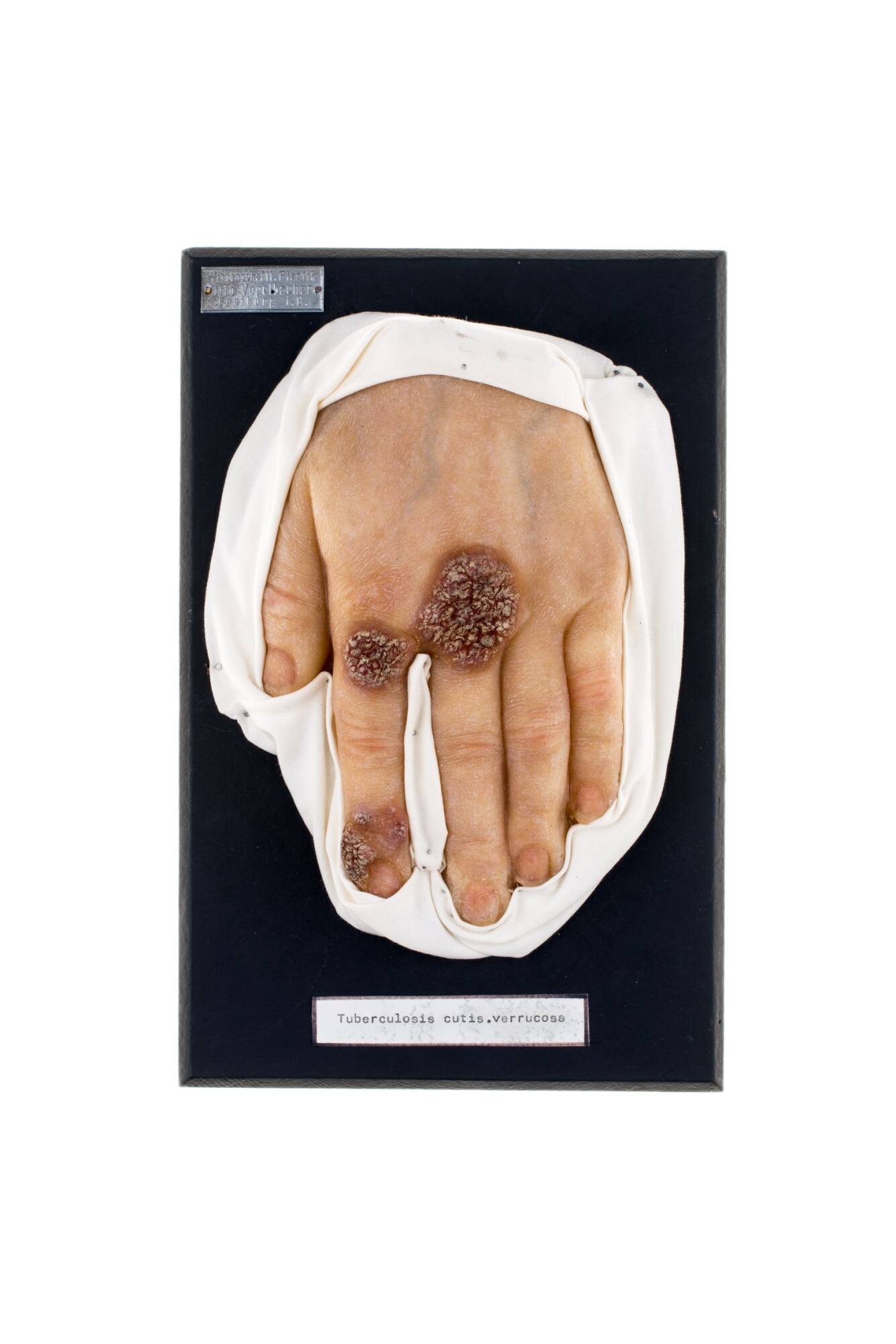 BeschreibungHistorischer Patient: Geschlecht unbekannt, linke Hand, HandrückenEinzelmodell/Gruppe/Reihe: vermutlich Einzelmodell
