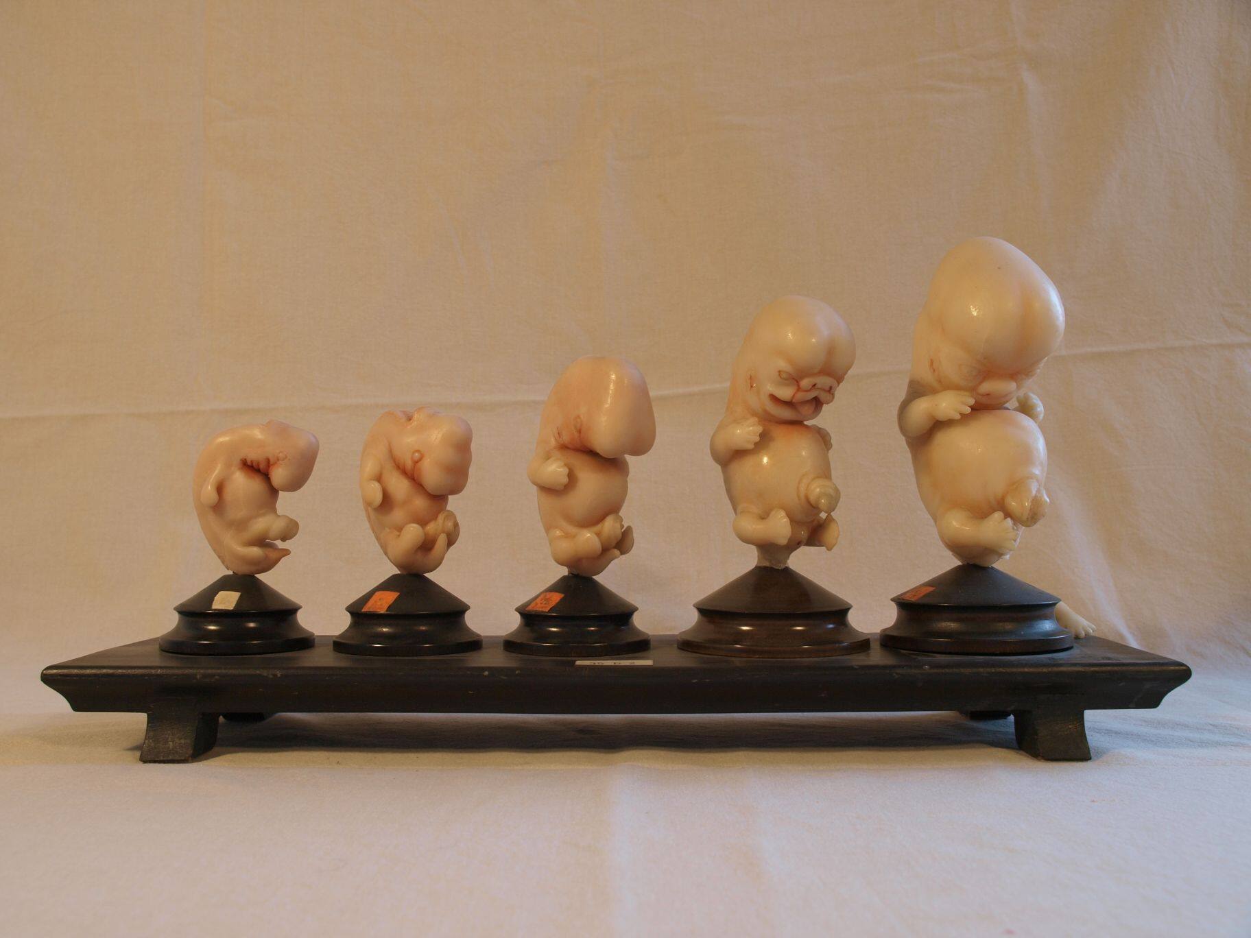 BeschreibungDas Wachsmodell zeigt die Stadien der embryonalen Entwicklung des Menschen. Datiert wird das Modell ins 19. Jahrhundert.Objektnr.UKT-As-5