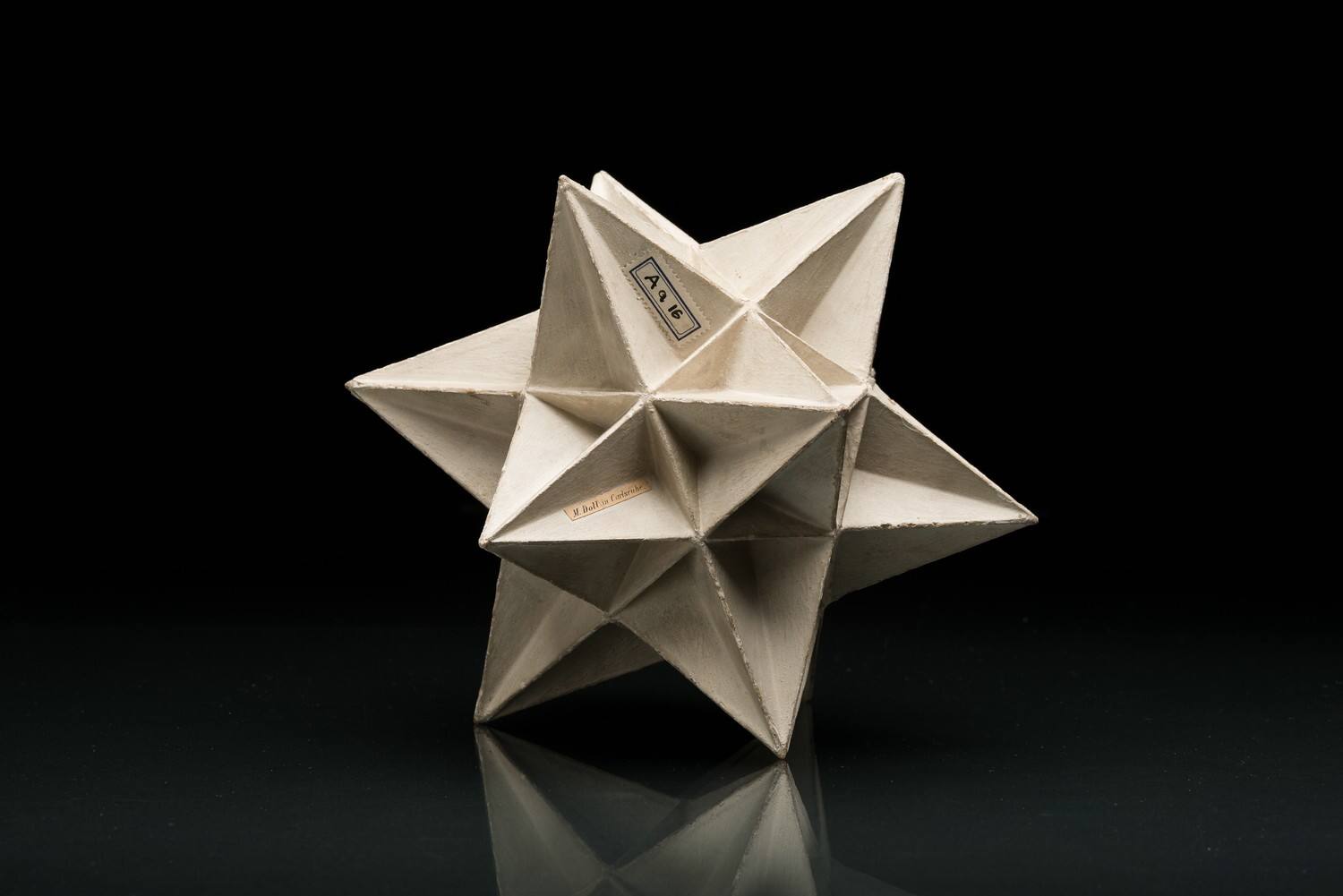 BeschreibungVier Sternpolyeder (Vgl. Brückner, Vielecke und Vielflache S. 168/169.) Doll, Karlsruhe. Von der Sternwarte übernommen (1878).Zwanzigflächiges Sternzwölfeck (Brückner, Tafel 7, Fig. 24) poinsotsche Körper.