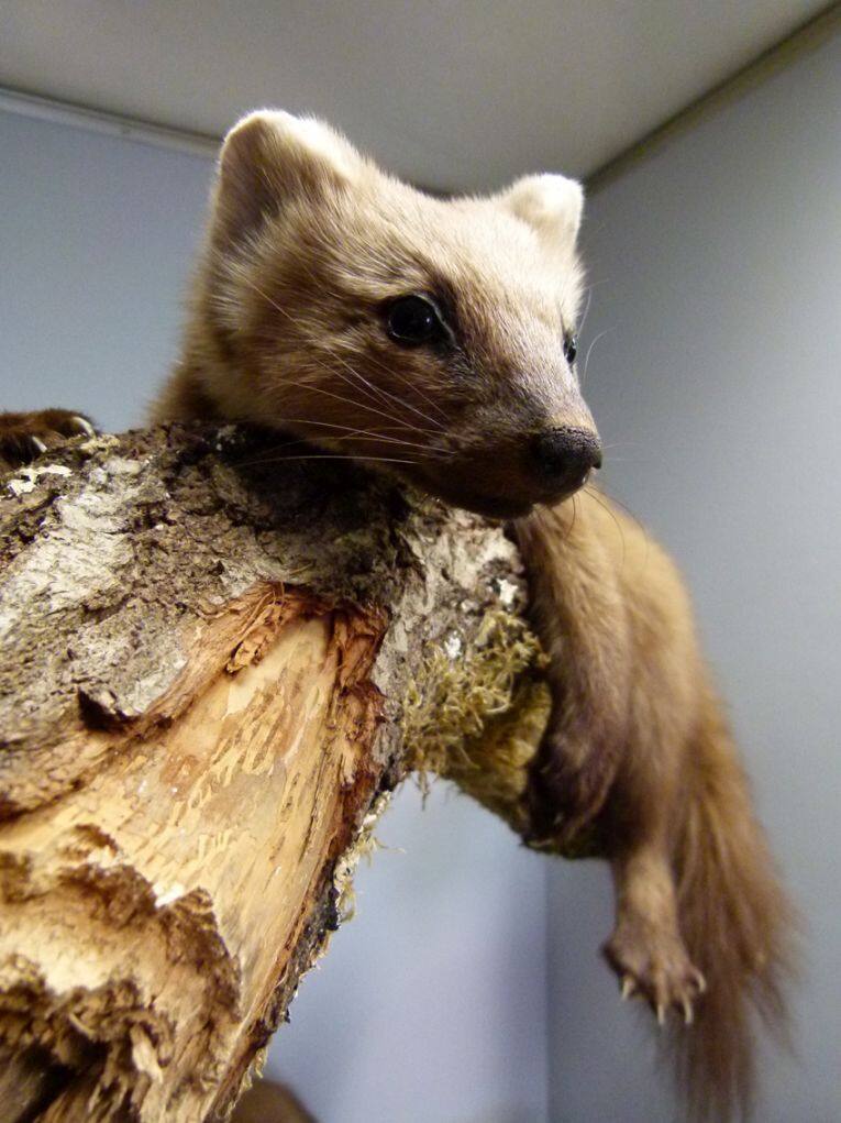 BeschreibungDer Baummarder ist eine der beiden in Europa beheimateten Raubtierarten aus der Gattung der Echten Marder. Noch häufiger kommt die Art des Steinmarders vor, der weniger Scheu vor dem Menschen hat und bekannt dafür ist, Schäden in Fahrzeugen anzurichten. Der Baummarder ist seltener und wird wegen seines als hochwertig geltenden Felles oft gejagt.Objektnr.IEÖ-Zo-17