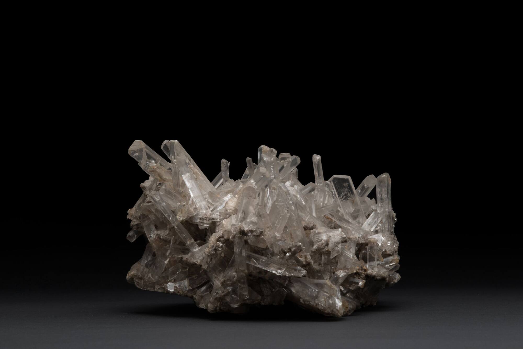 BeschreibungDas Mineral Gips (Formel: CaSO₄*2H₂O) kann in sehr verschiedenen Formen wachsen. Die prismatische Gestalt der großen Gipskristalle korrespondiert mit der regelmäßigen Anordnung der Atome in der Kristallstruktur. Fundort: Friedrichsroda, Thüringen.