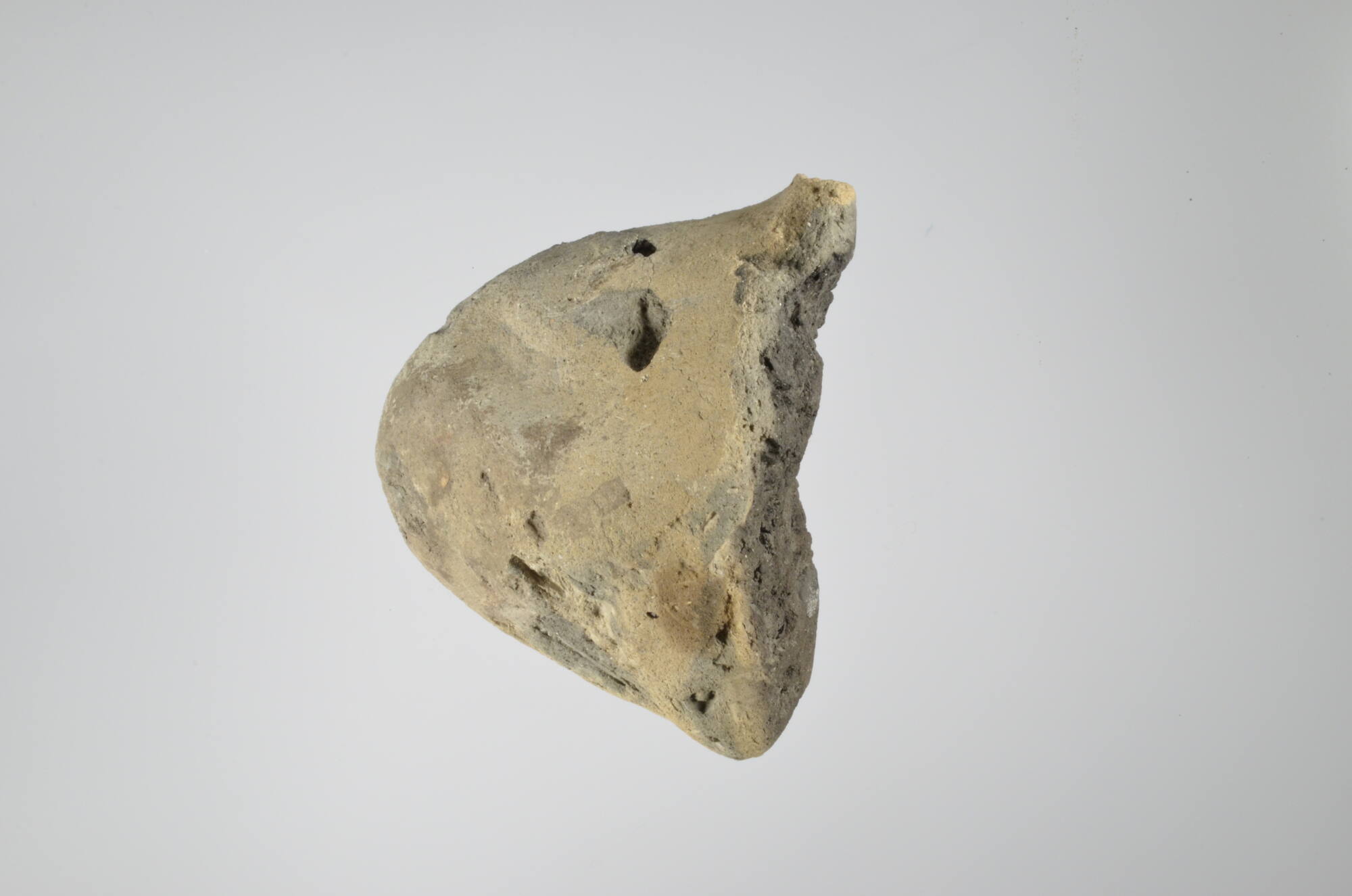 BeschreibungDieser einzelnen, massiven Tonhalbkugel wurde Ende der 1980er Jahre Unrecht getan. Sie wurde bei einer Inventarisierung als Webgewicht klassifiziert, wo sie doch eigentlich zur zentralen ästhetischen Arbeit eines Ahnenkultes gehört haben soll. Die jüngere Forschung zeigt, dass ganze Wände in Kulthäusern der Pfahlbausiedlungen mit weiblichen Figuren bemahlt waren. Die Brüste wurden dreidimensional aufmodelliert und blieben, wohl ihrer Massigkeit halber, über die Zeit am besten erhalten.MaßeLänge: 5,4 cm