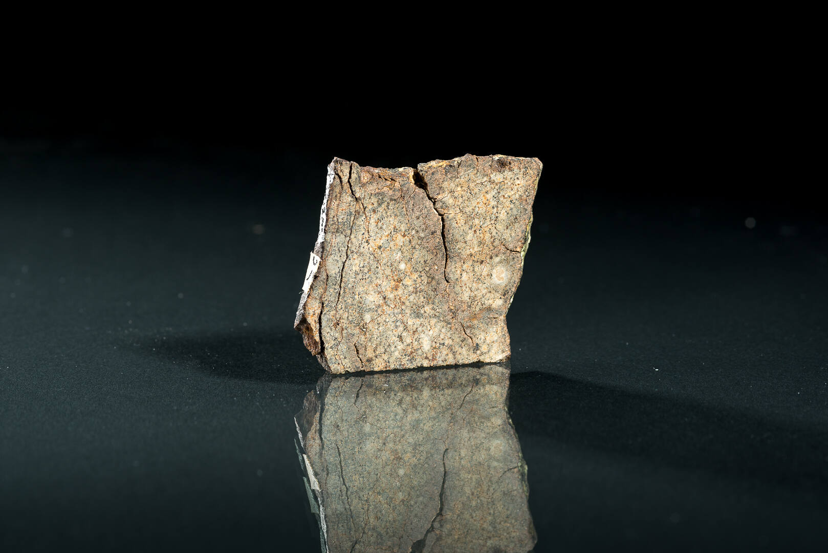 Stein: polymikter brecciöser grauer Chondrit mit Partien von schwarzem Chondrit