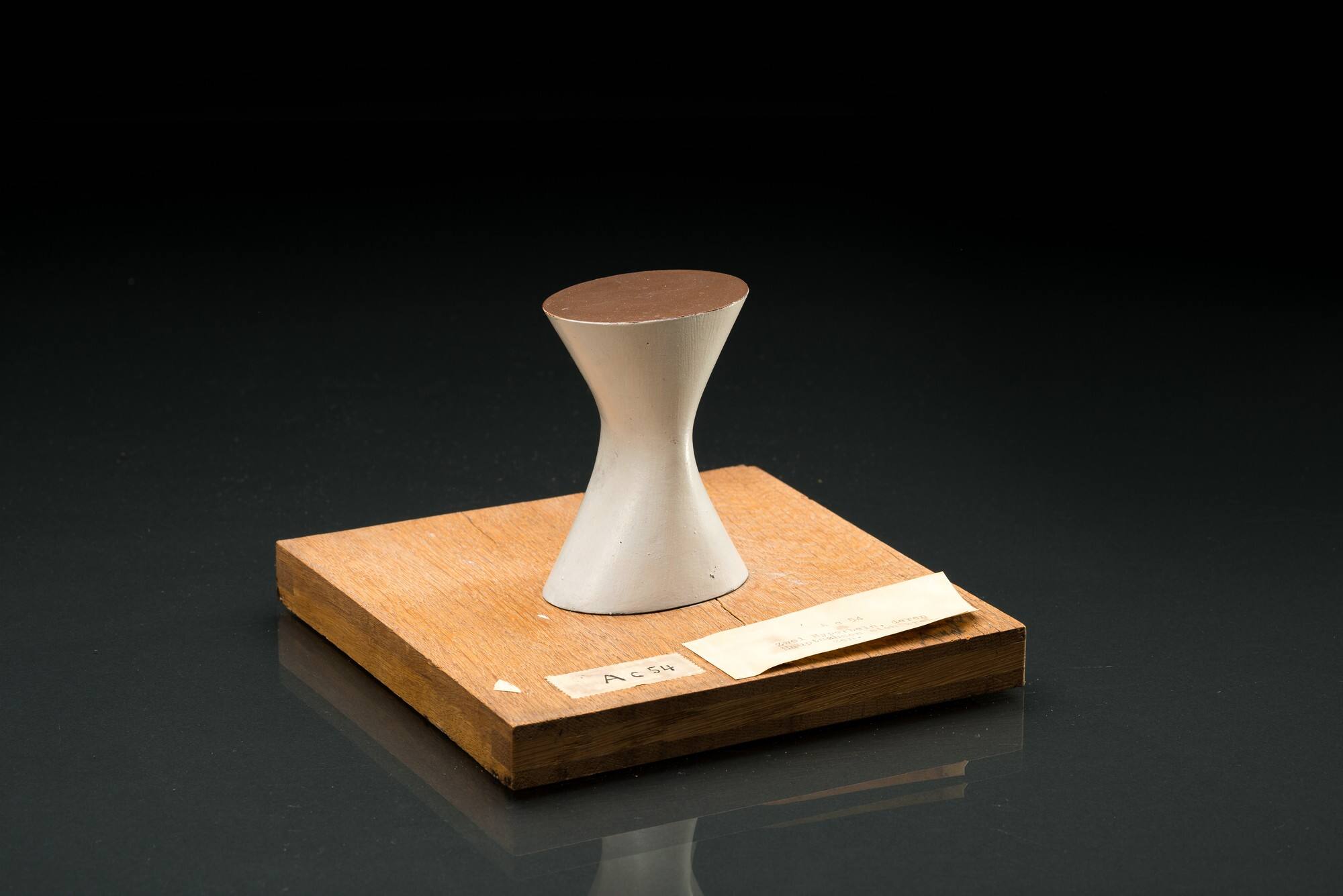 Beschreibung27 mathematische Oberflächen nach Plücker, in Zinkguß: Äquatorialkomplexflächen (vgl. dessen Neue Geometrie des Raumes): Ein beweglicher Kugelschnitt, [...] dessen beide Scheitel haben in 2 zueinander und auf der Ebene der bewegl. Kugelschnitts senkrecht stehenden Ebenen folgende Seitkurve. Von W. Lesemeister in Köln. Preis zus. 450.– M.(Inventar des Mathematischen Seminars der Universität Tübingen, 1933, S. 18–19.)