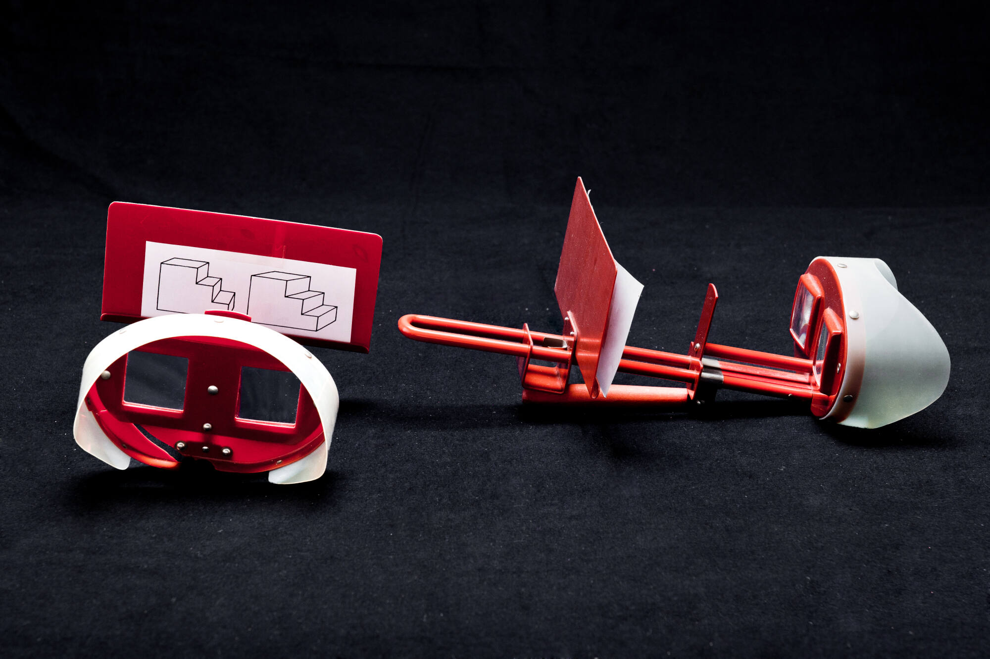 Diese Brille lenkt den Blick der beiden menschlichen Augen so um, dass sie vor sich nicht mehr zwei fast identische, nur leicht winkelverschobene Bilder, sondern ein dreidimensionales Objekt wahrnehmen. Am konkreten Beispiel, dem „Stereoscopic Atlas of Neuroanatomy“, erhalten die Betrachter einen Eindruck vom Gehirn, das erst aus Lichtsignalen Bilder und Gegenstände macht. Das Exponat zeigt eindrücklich, wie konstruiert unsere Wahrnehmung ist, wie Körperteile vom Auge über den Sehnerv bis zum Visuellen Cortex die scheinbar selbstverständliche Tatsache unserer sichtbaren Umwelt erst herstellen. Wer weiß, ob ein Mensch die dritte Dimension nicht völlig anders wahrnimmt als der andere? || Philipp Aumann