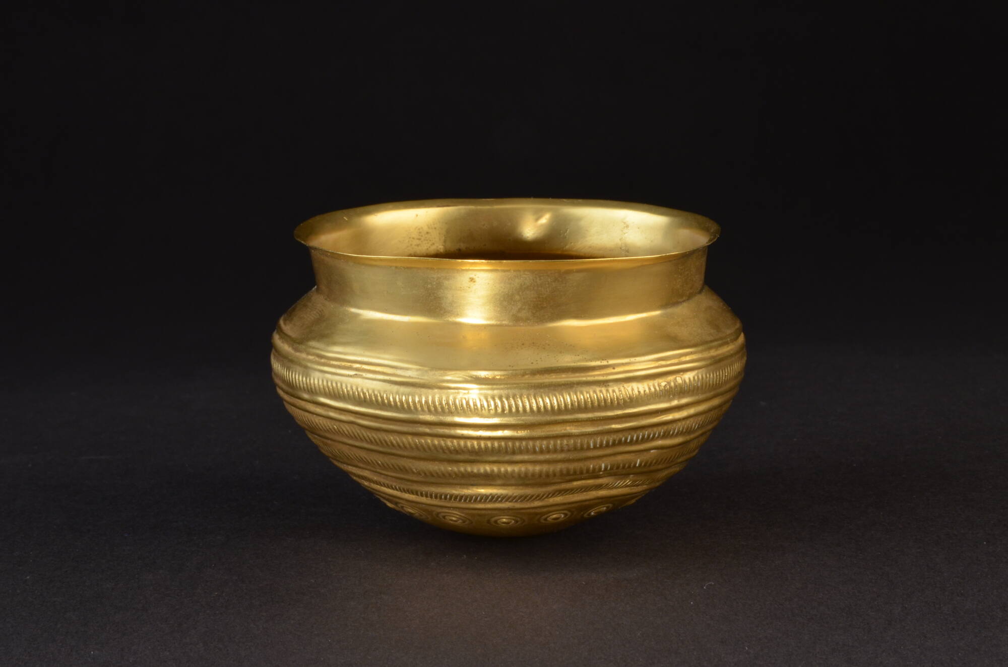 Wie die übrigen Goldgefäße, beeindruckt dieses Objekt durch die ungemein feine Verarbeitung, durch die das Gold in die gewünschte Form getrieben wurde. Trotz der scheinbaren Zartheit der dünnwändigen Behältnisse sind alle acht Goldschalen in sehr gutem Zustand; ein Umstand, der wohl nicht zuletzt dem schützenden Tongefäß zuzuschreiben ist, in dem sie bei ihrer Bergung zu Beginn des 20. Jahrhunderts im Boden lagerten.