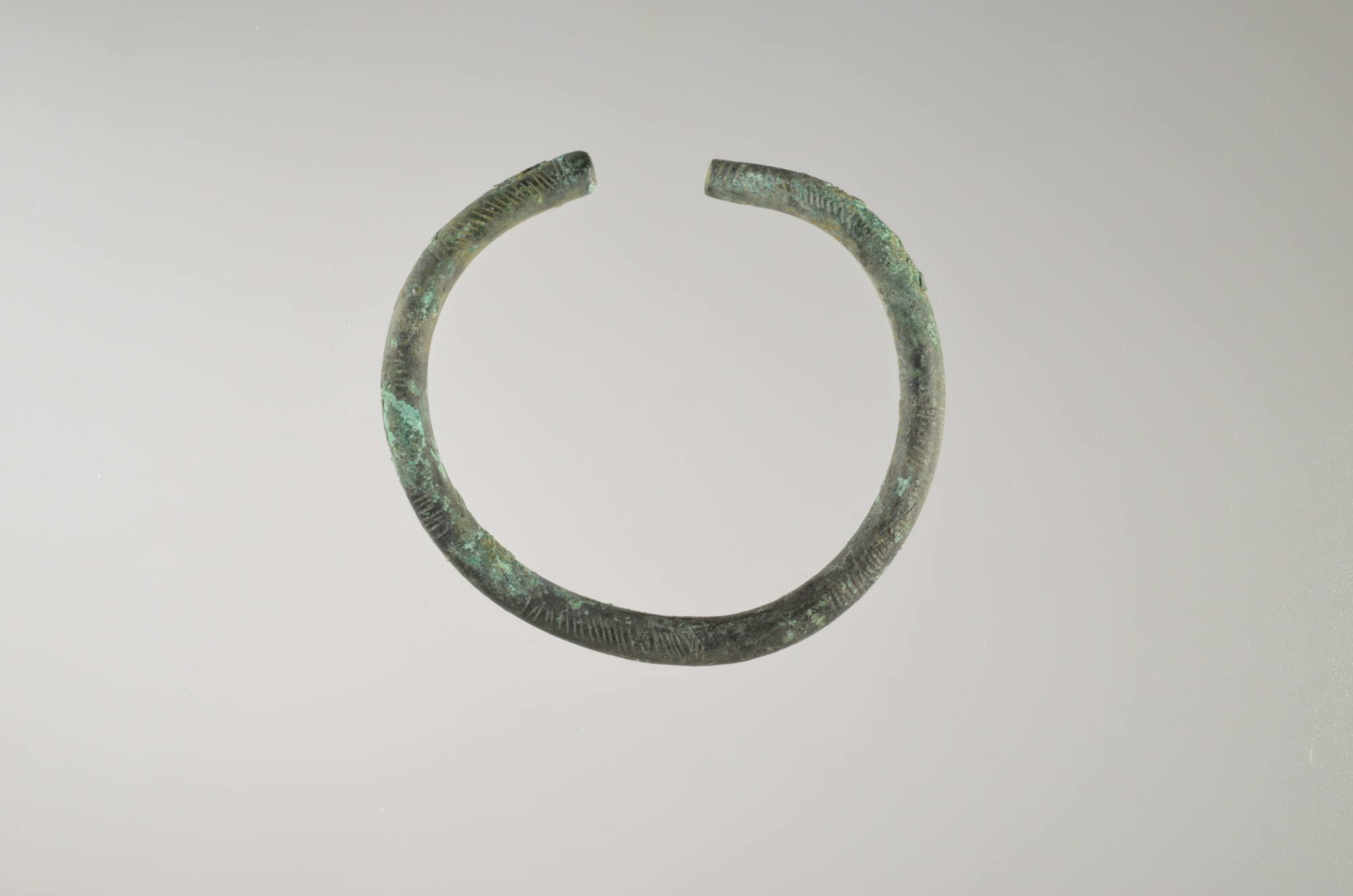 BeschreibungDer verzierte Armring kommt aus Grab 6 eines Grabhügels zwischen Klammberg und dem Trochtelfinger Stadtwald.MaßeDurchmesser: 6,5 cm