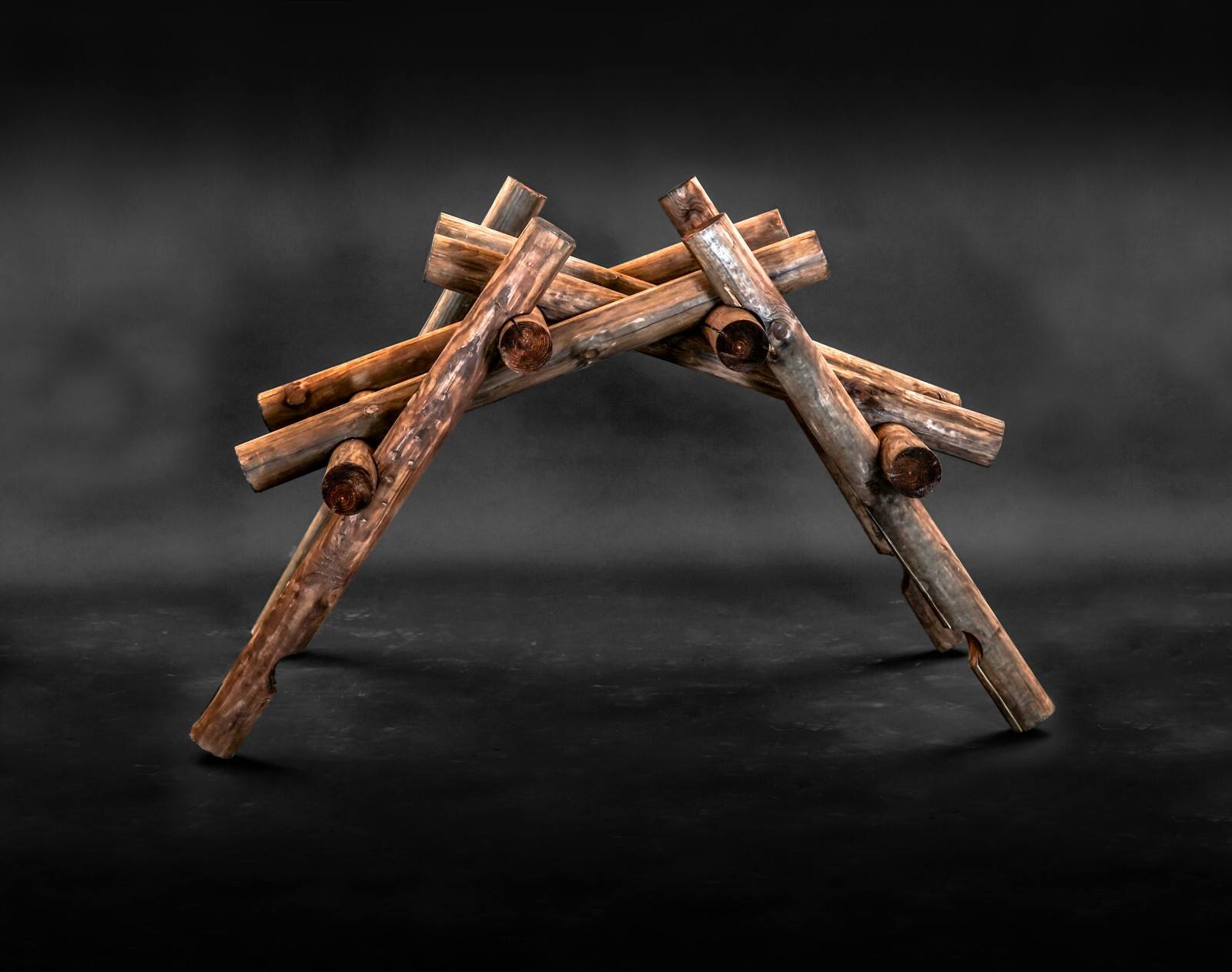 BeschreibungMit Brücken beherrscht der Mensch die Natur. Die Notizbücher von Leonardo beinhalten zahlreiche Zeichnungen unterschiedlicher Brückenkonstruktionen. Auch in seinen Gemälden finden sich immer wieder Brücken im Bildhintergrund, unter anderem auf dem Porträt der Mona Lisa.Diese Zeichnung einer mobilen Bogenbrücke diente laut Leonardo militärischen Zwecken. Ohne Schrauben, Dübel oder Seile stützen sich die Rundhölzer durch ein einfaches Flechtprinzip selbst. Eine ähnliche Brückenkonstruktion beschreibt er um 1482 in einem Empfehlungsschreiben für den Mailänder Hof: „Ich habe Pläne für sehr leichte, aber dabei starke Brücken, die sich ganz leicht befördern lassen […].“