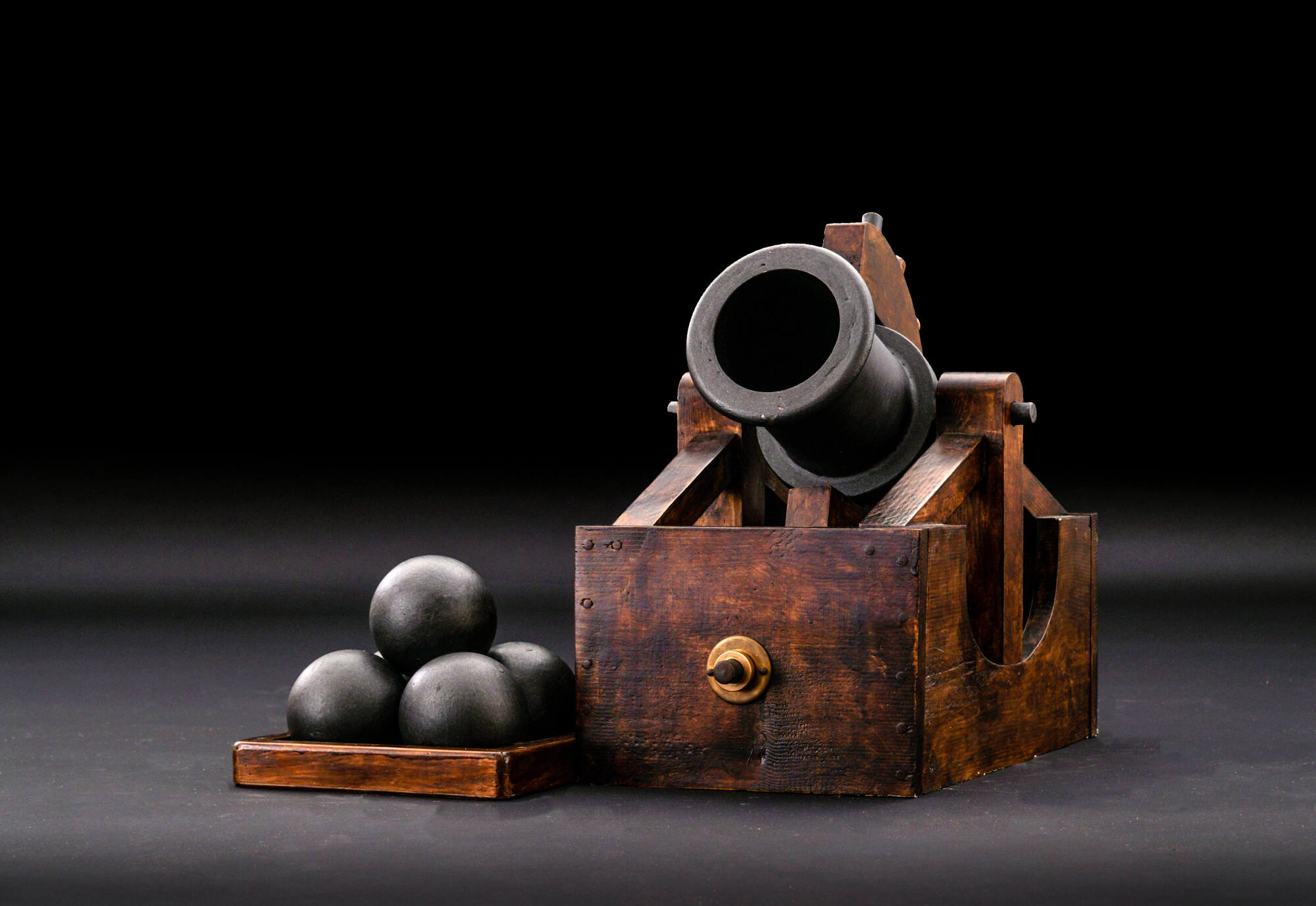 MaterialHolzmodell eines Mörsers mit gusseisernem Kanonenrohr
