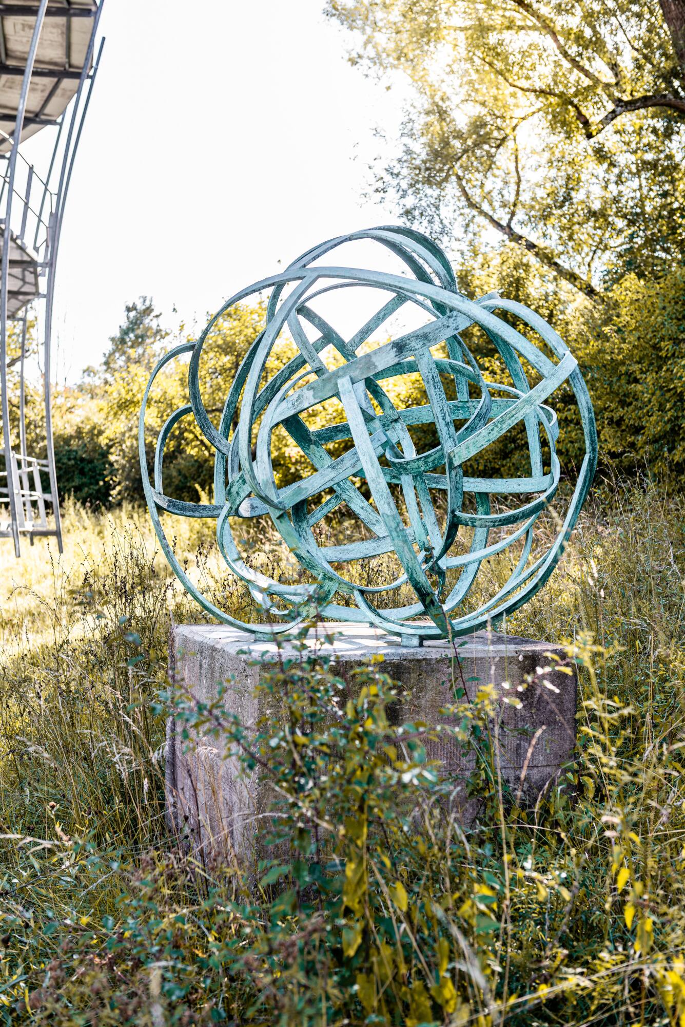 BeschreibungDas Kunstwerk am Neubau des Anatomischen Instituts gliedert sich in zwei Teile. Der erste, eine Skulptur aus Bronzeguss, befindet sich auf einem Betonsockel im Außenbereich des Gebäudes. Die durch Wind und Wetter grün verfärbten Bronzestäbe schlingen sich konzentrisch nach außen und erinnern an den Aufbau einer Zelle. Das Wandrelief im Inneren des Gebäudes ist aus Glas und spiegelt den Körper vom Außenbereich in kalter, distanzierter Ansicht. Damit brilliert der Künstler eine Projektion der Skulptur in zwei verschiedenen Blickwinkeln. Durch das "Zerteilen" des Körpers in Schichten und die zweidimensionale Ebene, wird der Kontext zum Gebäude und den Wänden des Mikroskopiesaals, an welchem das Relief angebracht ist, zur Spitze getrieben.Standort: Anatomisches Institut, Elfriede-Aulhorn-Str. 6