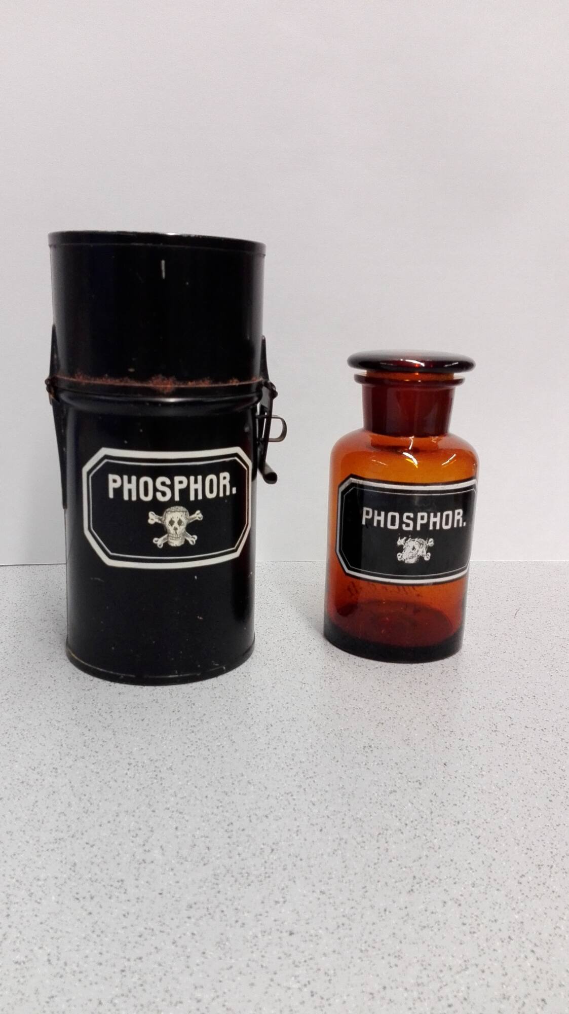 BeschreibungDie Experimentalvorbereitung der Anorganischen Chemie besitzt eine umfangreiche Sammlung an Chemikalien, die in historischen Glasflaschen aufbewahrt und ausgestellt werden. Bei Umbaumaßnahmen der Sammlung wurden zudem einige alte Gefäße mit Substanzen aus der Zeit des deutschen Chemikers Wilhelm Johann Schlenk (1879–1943), welcher ab 1935 an der Universität Tübingen lehrte, gefunden. Diese beiden Fläschchen enthalten Phosphor.Objektnr.MUT-Wg-1272