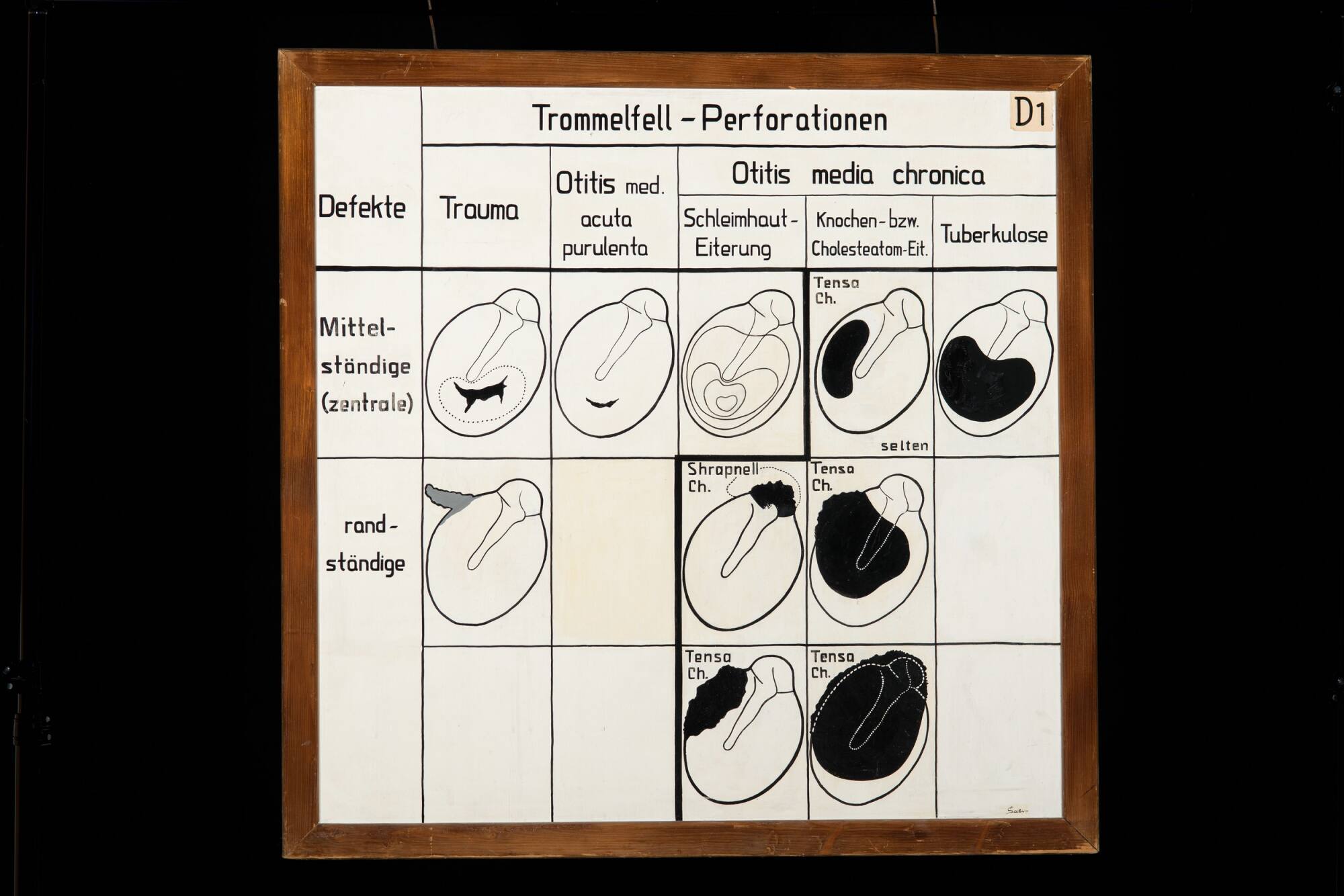 BeschreibungTrommelfell-Perforationen können an verschiedenen Lokalisationen auftreten und unterschiedliche Ursachen haben. Der Defekt kann mittelständig (zentral) oder randständig sein. Bei akuten Ursachen wie einem Trauma oder einer akuten, eitrigen Mittelohrentzündung (Otitis media acuta purulenta) entstehen meist kleine Defekte. Bei chronischen Mittelohrentzündungen (Otitis media chronica) kann es durch Schleimhaut-, Knochen- oder Cholesteatom-Eiterungen oder Tuberkulose zu sehr großen (bis subtotalen), mittel- oder randständigen Trommelfell-Perforationen kommen.MaßeH x B: 142 × 142 cm