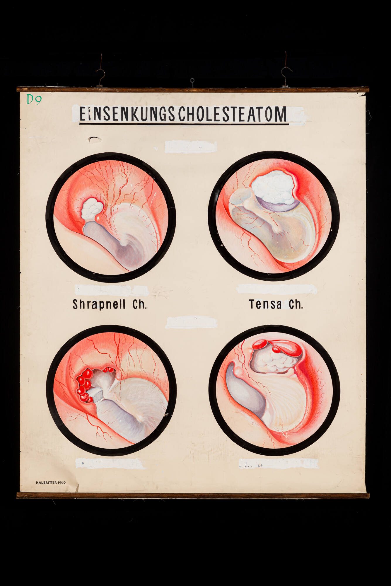 BeschreibungDas Perlgeschwulst (Cholesteatom) kann anhand seines Ursprungs am Trommelfell unterschieden werden. Das Shrapnell-Cholesteatom (Henry Jones Shrapnell, 1792–1834, englischer Anatom) geht von dem schlafferen Anteil des Trommelfells aus, der Pars flaccida. Das Tensacholesteatom nimmt seinen Ursprung in der straffen Region des Trommelfells der Pars tensa.MaßeH x B: 180 × 150 cm