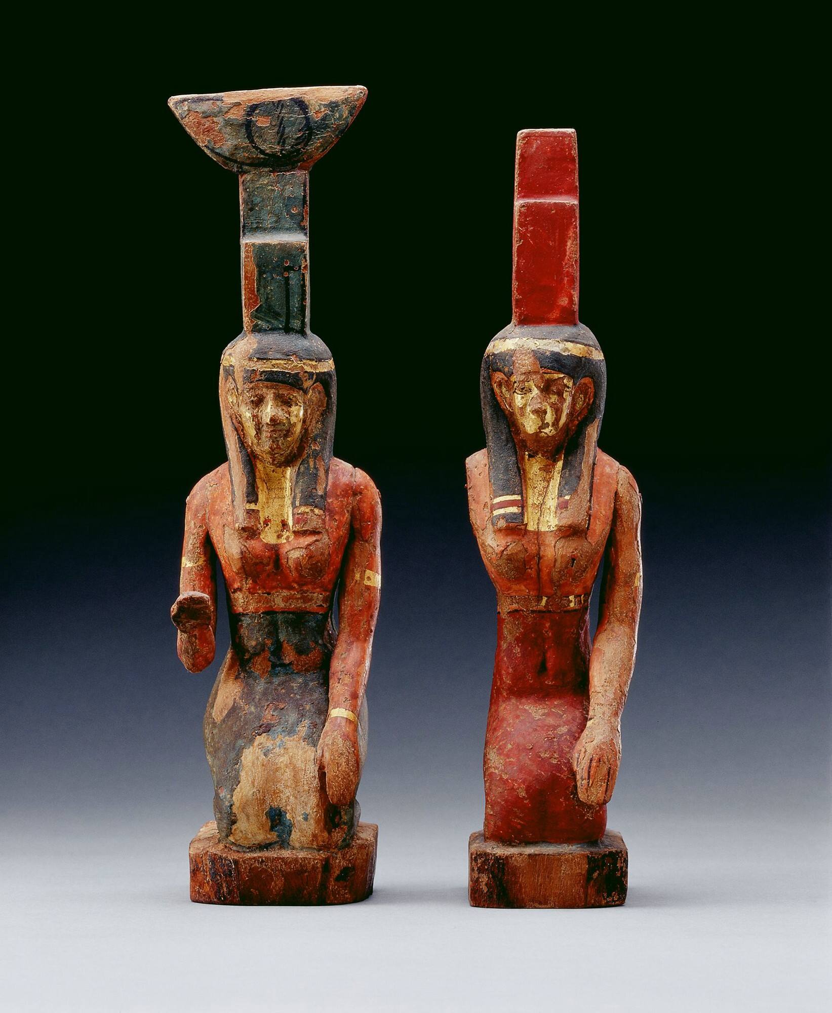 BeschreibungKlagende Nephthys, kniend auf einem länglichen Sockel. Die Statue ist farbig gefasst, partiell vergoldet, wobei beides sich nur bedingt erhalten hat. Auf dem Kopf trägt sie ihre Namenshieroglyphe.MaßeHöhe: 34 cm