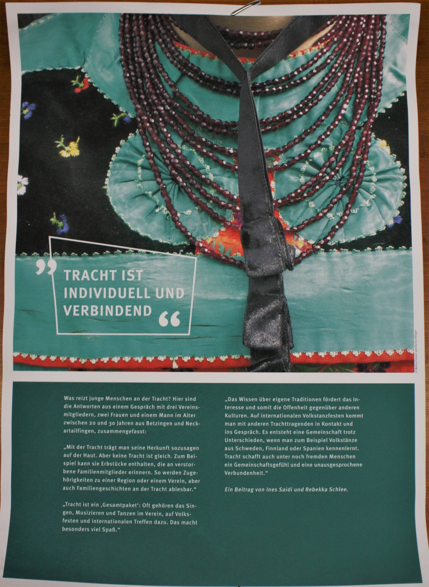 BeschreibungInsgesamt 8 Ausstellungplakate zum Thema Tracht. Die Poster-Ausstellung entstand im Rahmen des Projektseminars "Kleider machen Leute" (siehe LUI-Pr-3-6). Die Ausstellung entstand in Zusammenarbeit mit Studierenden des LUIs und der Universität Freiburg.7 Poster mit jeweils einem Tracht-Thema.