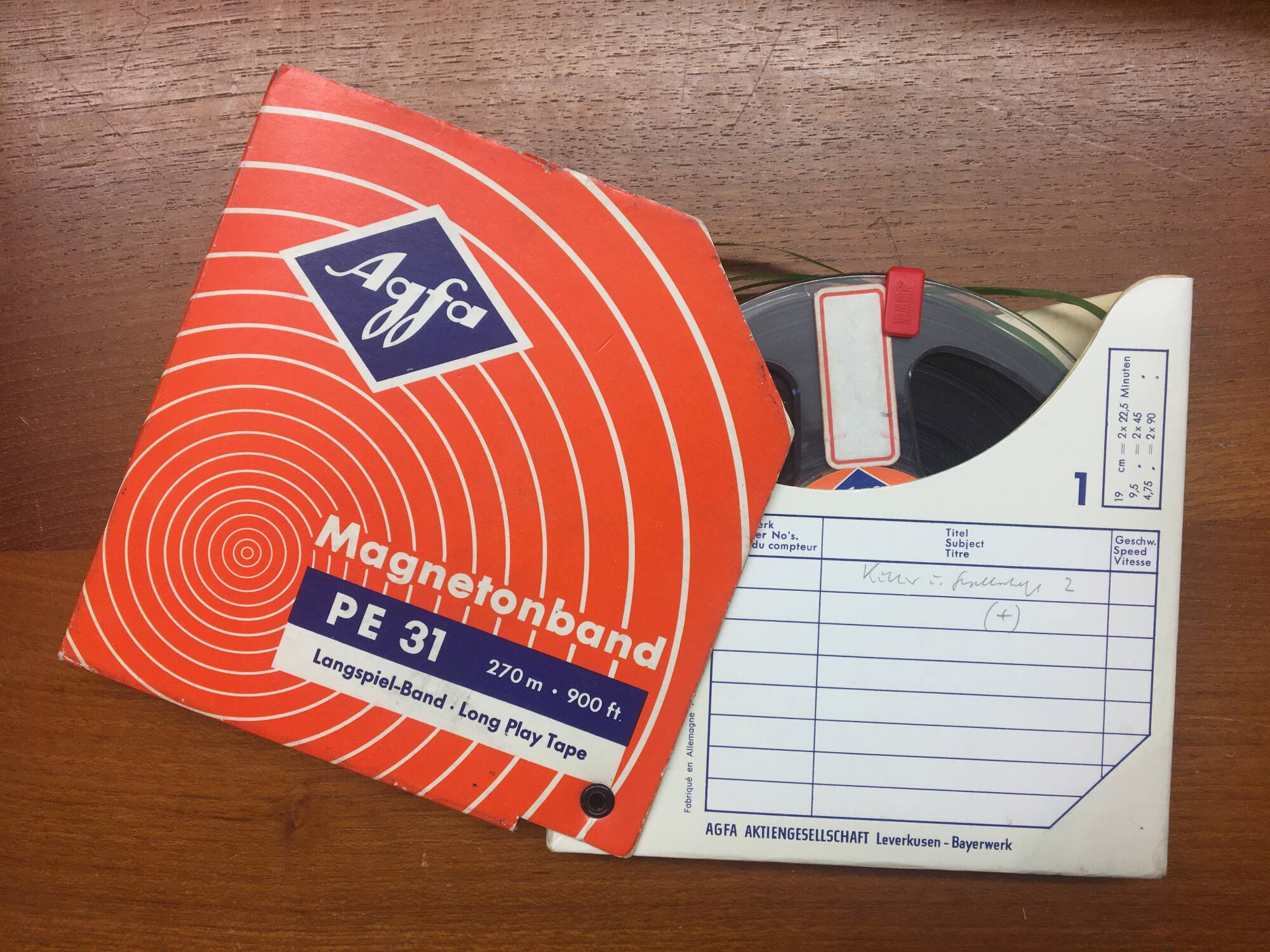 BeschreibungTonband mit aufgenommenen Vorlesungssitzungen "Kulturgefüge und Sozialstruktur" von Hermann Bausinger. Die Vorlesung wurde im Hörsaal mitgeschnitten. Das Tonband ist beschriftet: "Vorlesung Kulturgefüge l 3.Std. (12.4.)+ 4.Std. (18.4.) und stammt vermutlich aus den 1970er Jahren. Das Tonband war Teil der Ausstellung "Technik, die Wissen schafft" im LUI-Ausstellungsraum (Juli 2022 bis Dezember 2022), die im Rahmen eines Bachelor-Seminars bei Tim Schaffarczik entstand. Das Tonband wurde kuratiert mit den Tonbandgeräten UHER-4000 im Bereich "Feldforschung"