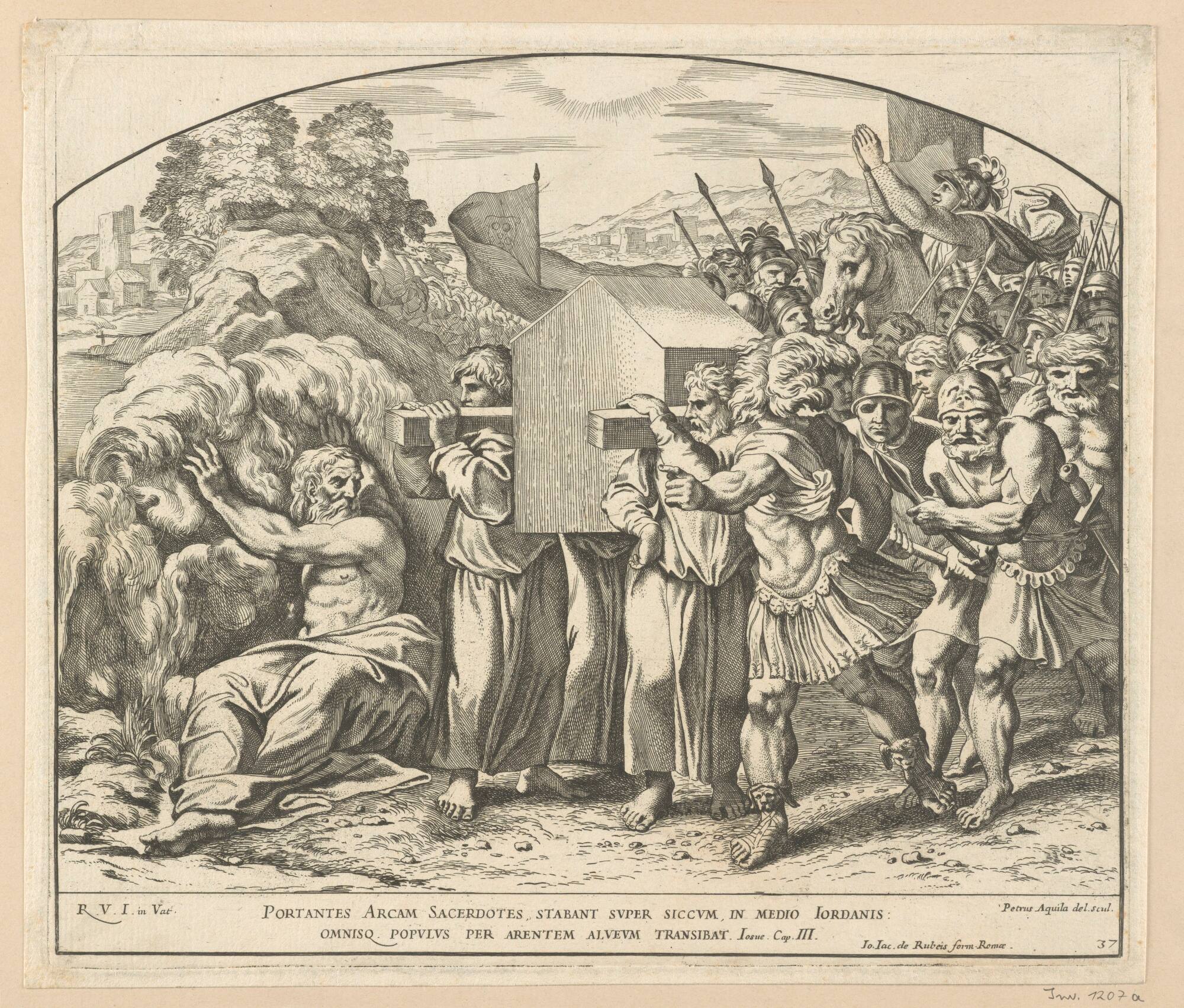 WeiteresPORTANTES ARCAM SACERDOTES, STABANT SVPER SICCVM. IN MEDIO IORDANIS: / OMNISQ. POPVLVS PER ARENTEM ALVEVM TRANSIBAT. Iosue. Cap. III.