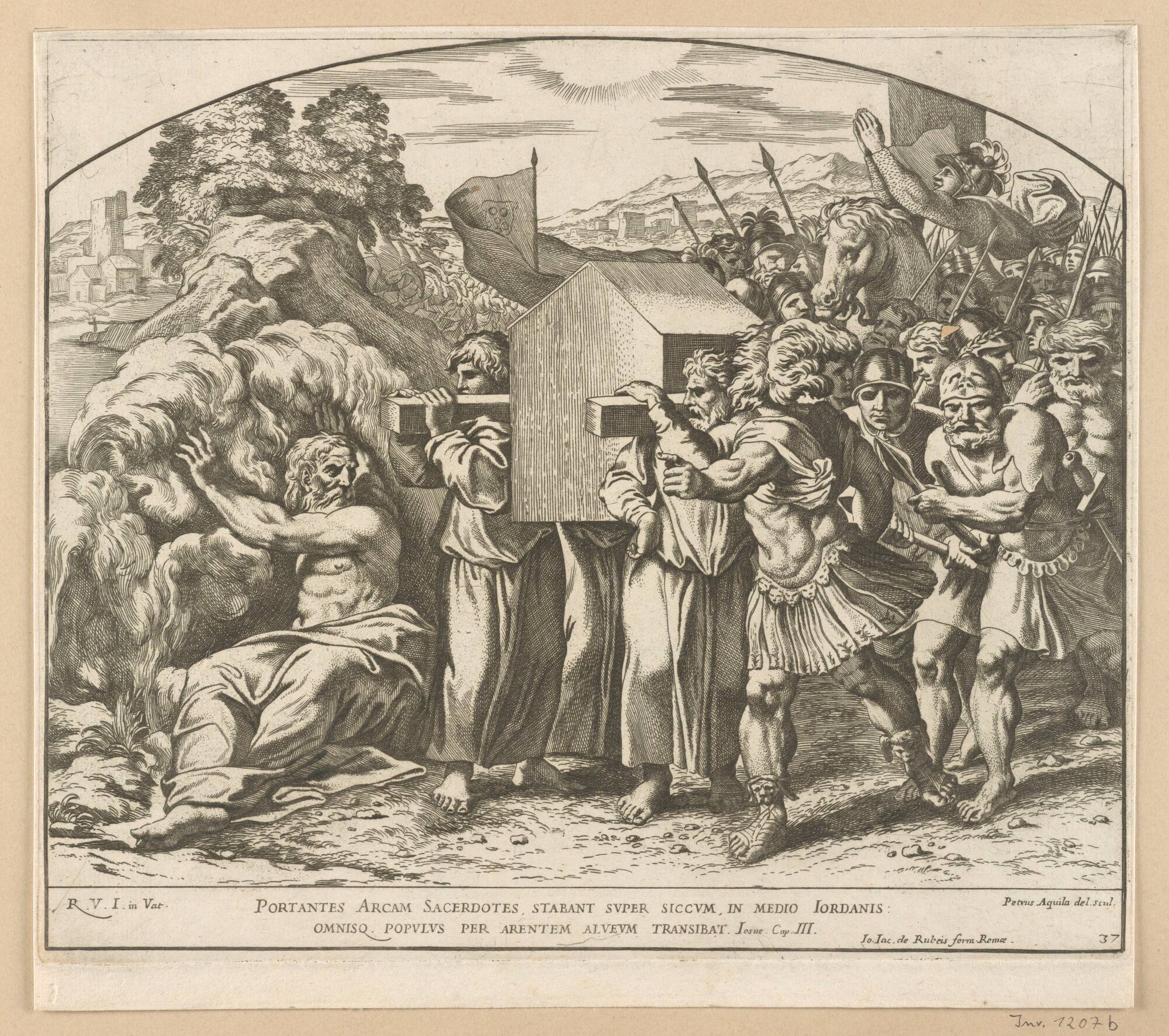 WeiteresPORTANTES ARCAM SACERDOTES, STABANT SVPER SICCVM. IN MEDIO IORDANIS: / OMNISQ. POPVLVS PER ARENTEM ALVEVM TRANSIBAT. Iosue. Cap. III.