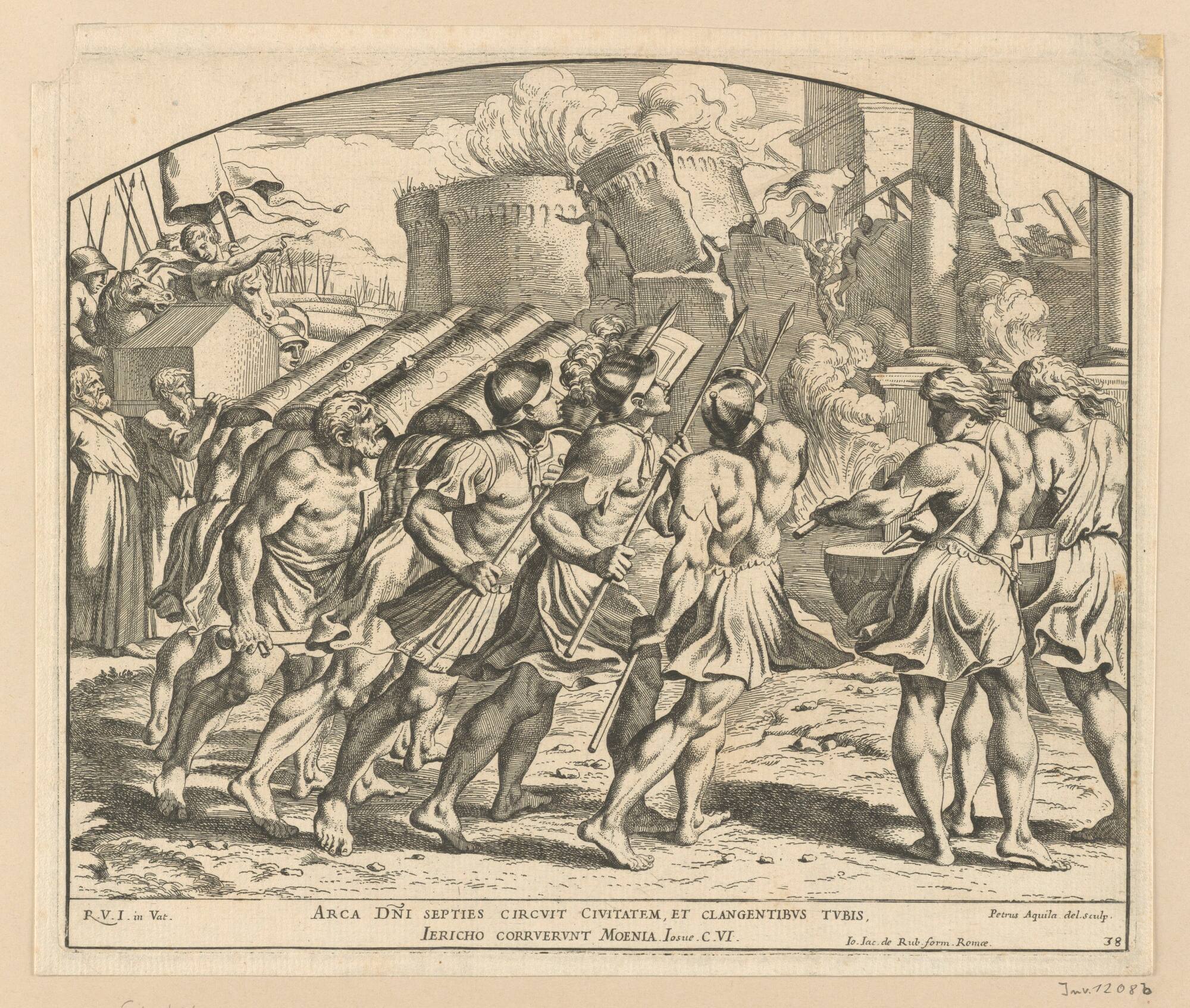 WeiteresARCA DNI SEPTIES CIRCVIT CIVITATEM, ET CLANGENTIBVS TVBIS, / IERICHO CORRVERVNT MOENIA. Iosue. C. VI.