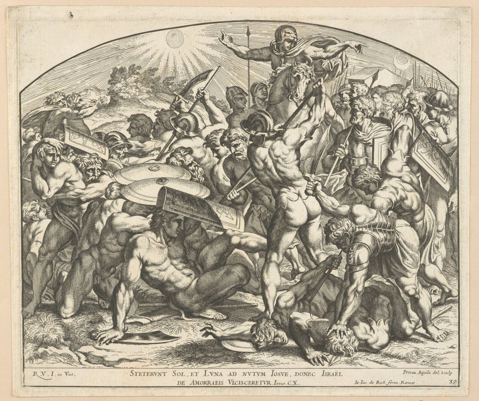 STETERVNT SOL, ET LVNA AD NVTVM IOSVE, DONEC ISRAEL / DE AMORRAEIS VLCIS CERETVR. Iosue. C. X.