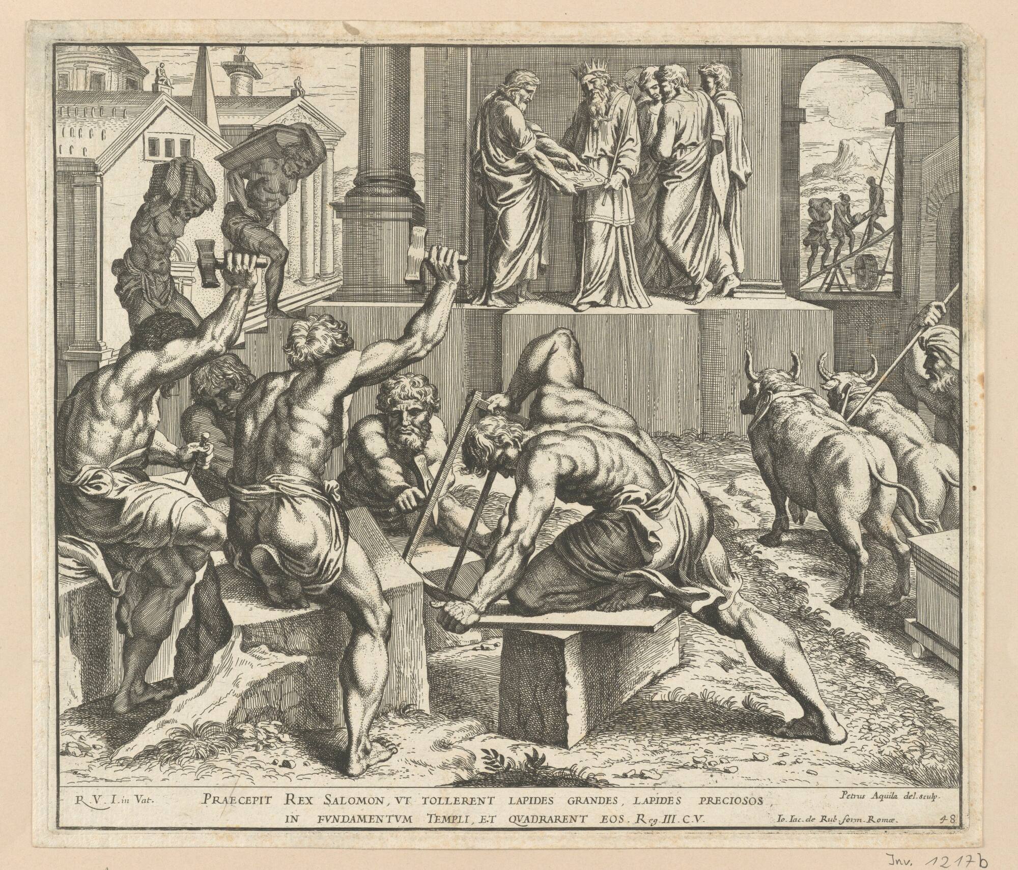 WeiteresPRAECEPIT REX SALOMON, VT TOLLERENT LAPIDES GRANDES, LAPIDES PRECIOSOS / IN FVNDAMENTVM TEMPLI, ET QVADRARENT EOS. Reg. III. C. V.