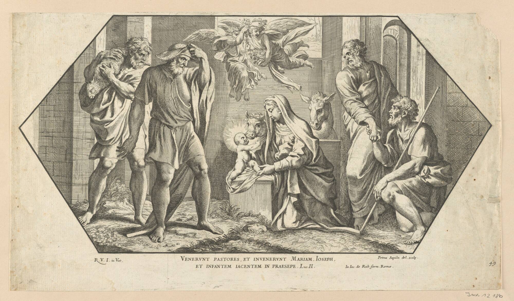 VENERVNT PASTORES, ET INVENERVNT MARIAM, IOSEPH, / ET INFANTEM IACENTEM IN PRӔSEPE. Luc.II.