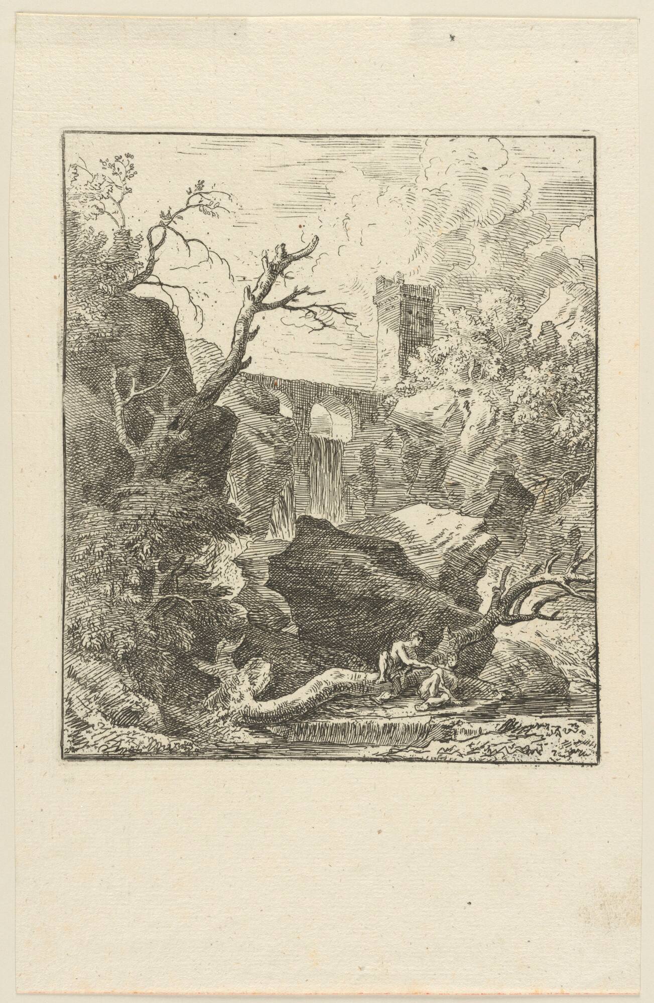Angler vor einer Brücke mit Turm (Serie: Landschaften)