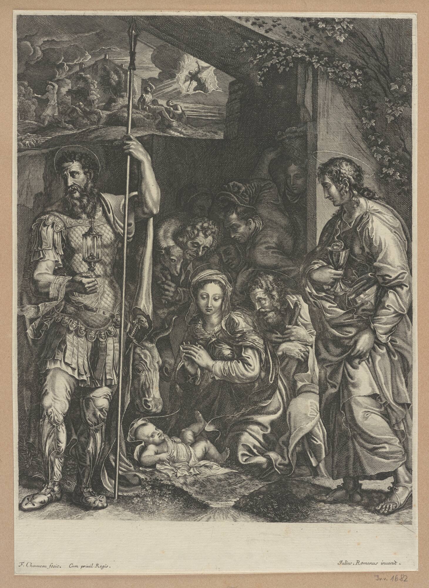 Anbetung der Hirten mit zwei Heiligen