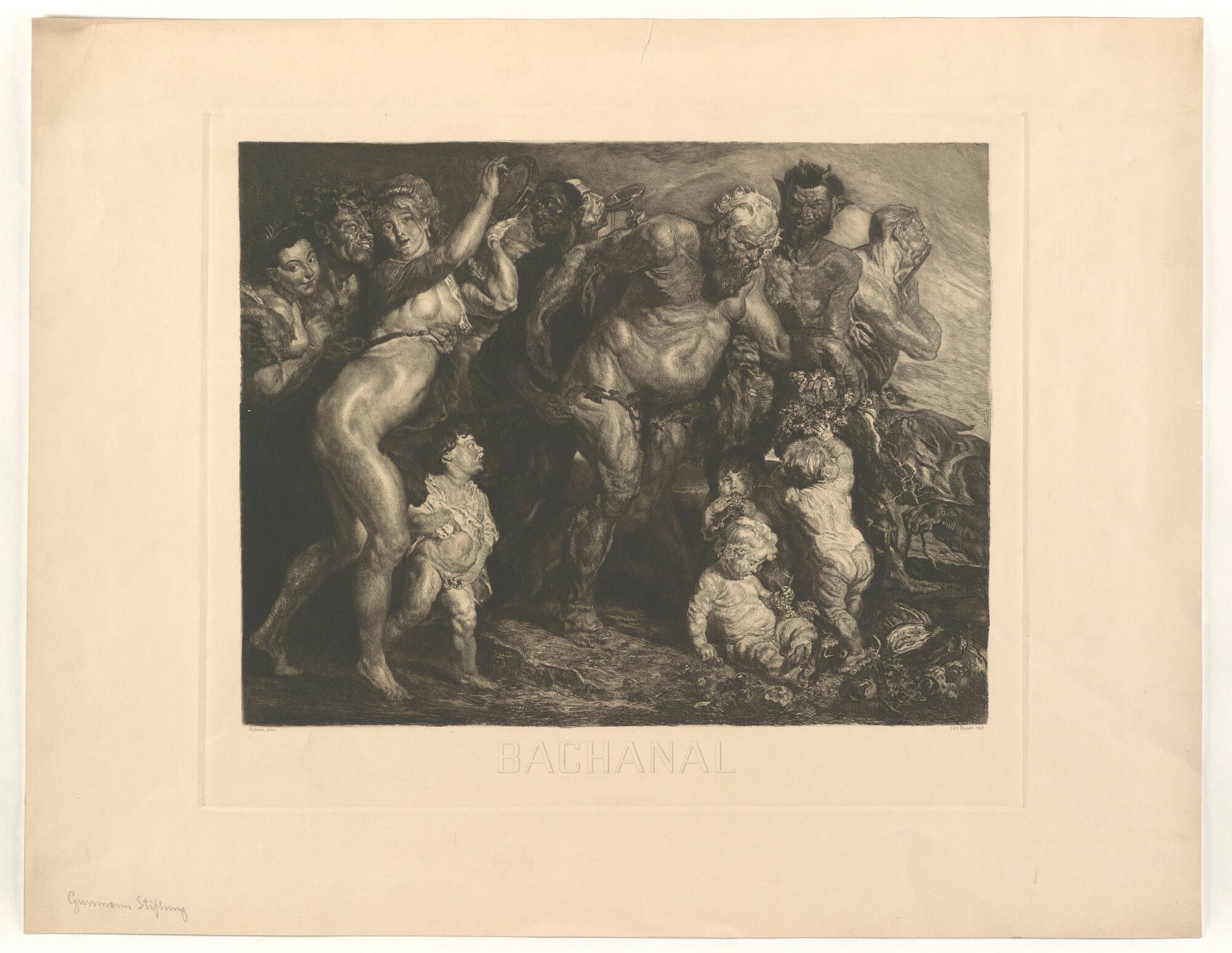 BeschreibungMythologische Szene; Bacchus und Gefolge mit Satyrn und Putti; Musik und TrinkgelageMaßeH x B (Blatt): 570 x 733 mm