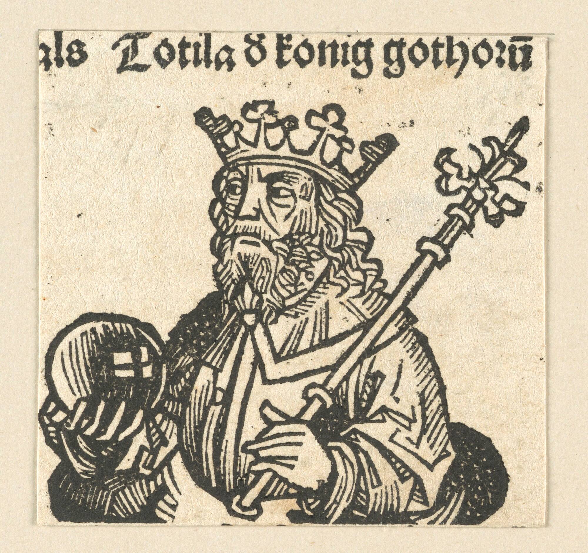 Schedelsche Weltchronik - Herrscherdarstellungen: Totila 8 koenig gohtoru(m) (145v)