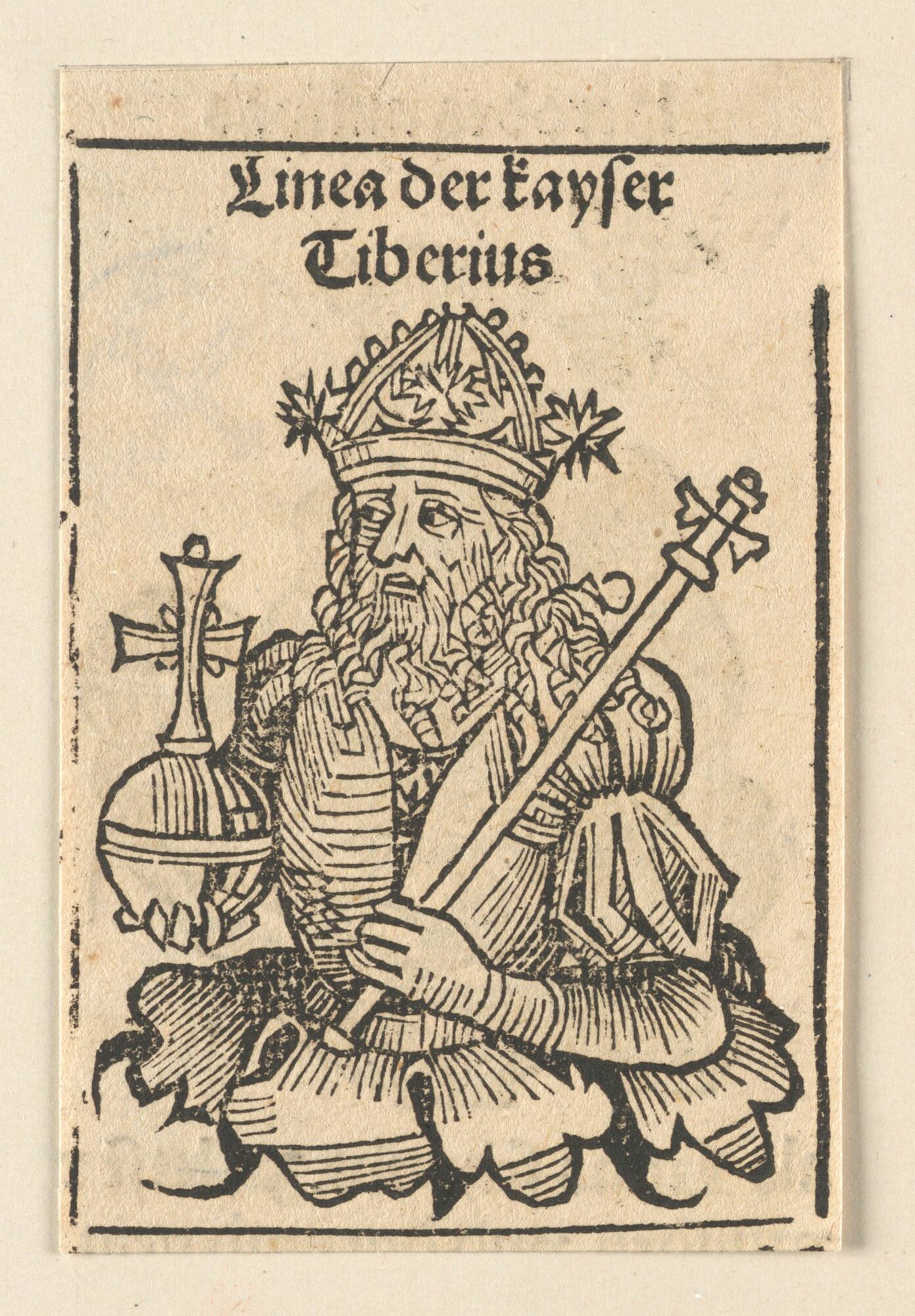 Schedelsche Weltchronik - Herrscherdarstellungen: Linea der kayser, Tiberius (096r)