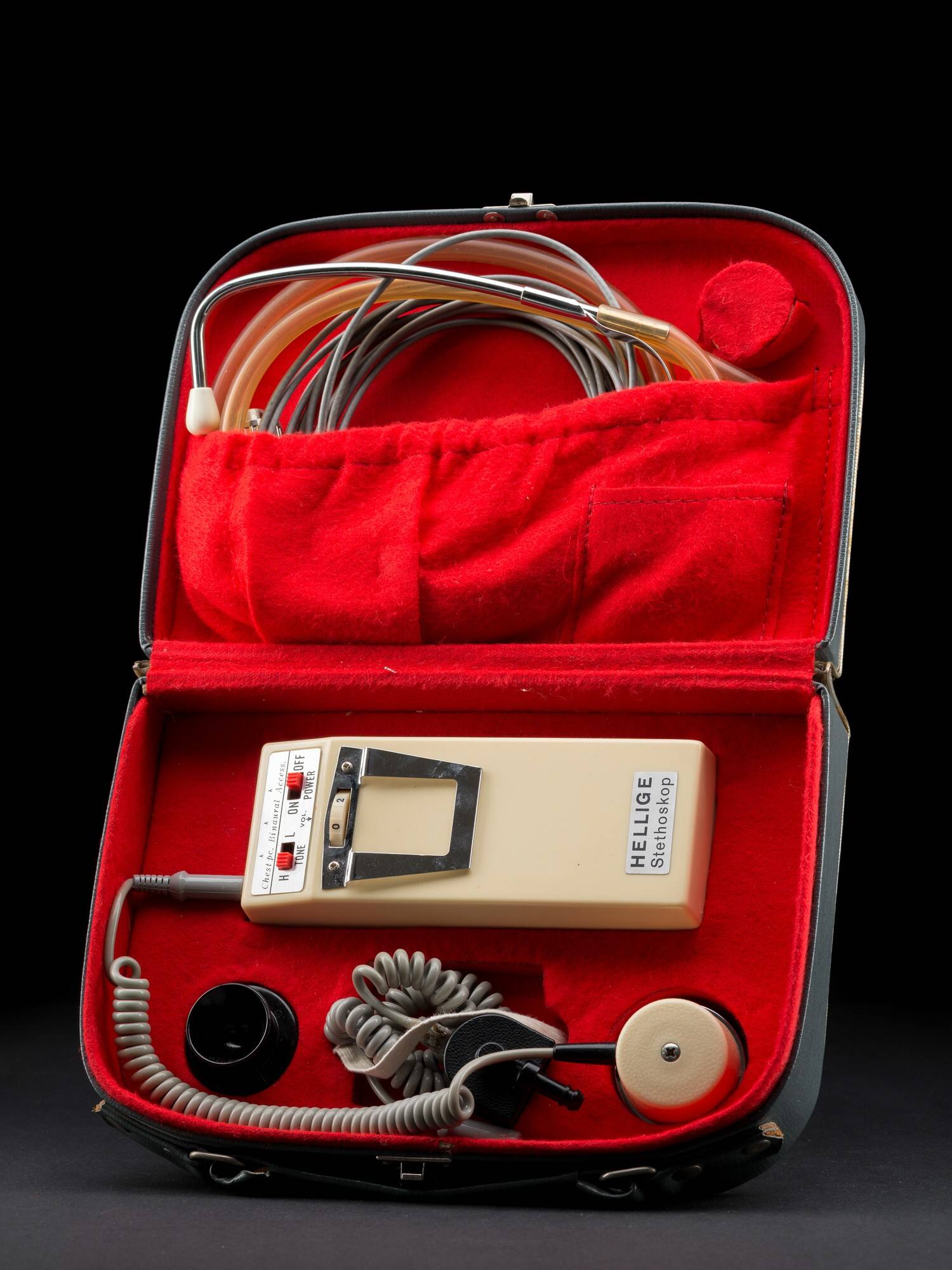 elektronischen Medizinapparaten, insbesondere von Elektrokardiographen. Ihr Sitz in Freiburg im Breisgau ist seit 1998, nach mehreren Umstrukturierungen und Übernahmen, integriert in die General Electric Healthcare. Sie stellte dieses elektronische Stethoskop mit Herztonverstärker her. Der Fundus Wissenschaftsgeschichte hat das Objekt – einen Koffer, der das Stethoskop, einen Herztonverstärker und einen zusätzlichen Abhörstempel beinhaltet – von den Tübinger Universitätskliniken, eventuell von der Frauenklinik, zur Verwahrung erhalten.