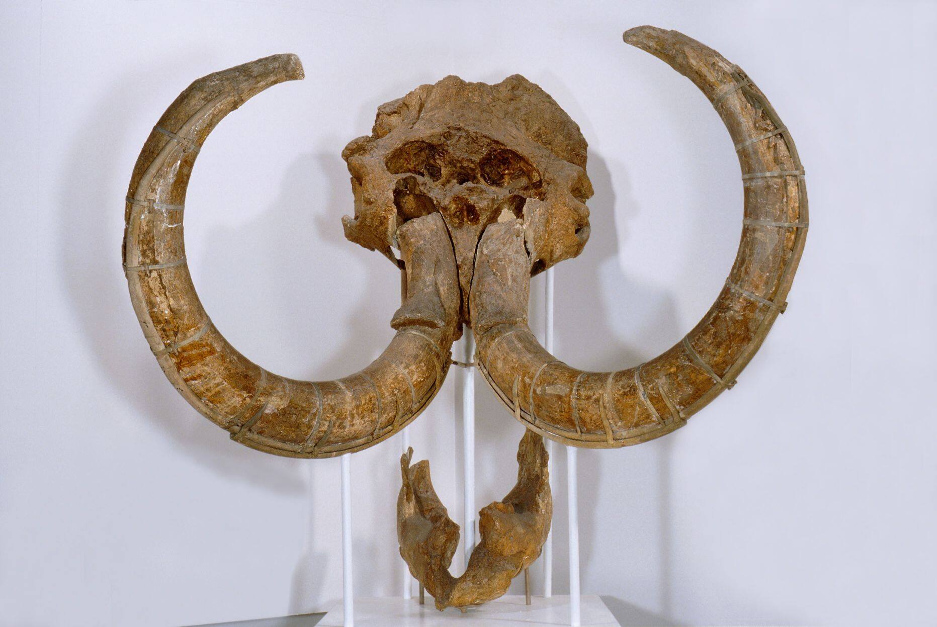 Der hier gezeigte große Schädel eines Wollhaarmammuts stammt aus dem Oberen Pleitozän – der jüngsten Eiszeit –, und damit aus einer Zeit, in der die Art bereits im Begriff war auszusterben. Vor etwa 10000 bis 12000 Jahren starben die meisten Vertreter der Gattung Mammuthus aus, nur einige wenige Populationen und Zwergformen konnten sich noch bis ca. 1800 v. Chr. halten.