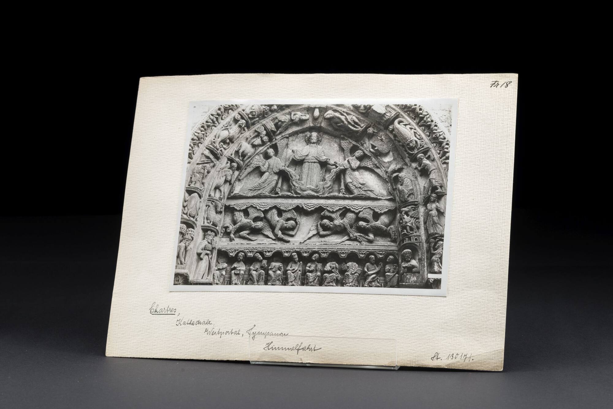 DescriptionFotografie des Tympanons mit der Szene der „Himmelfahrt“, aus dem Westportal der Kathedrale von Chartres.Unbekannter Fotograf, Fotoarchiv Weise