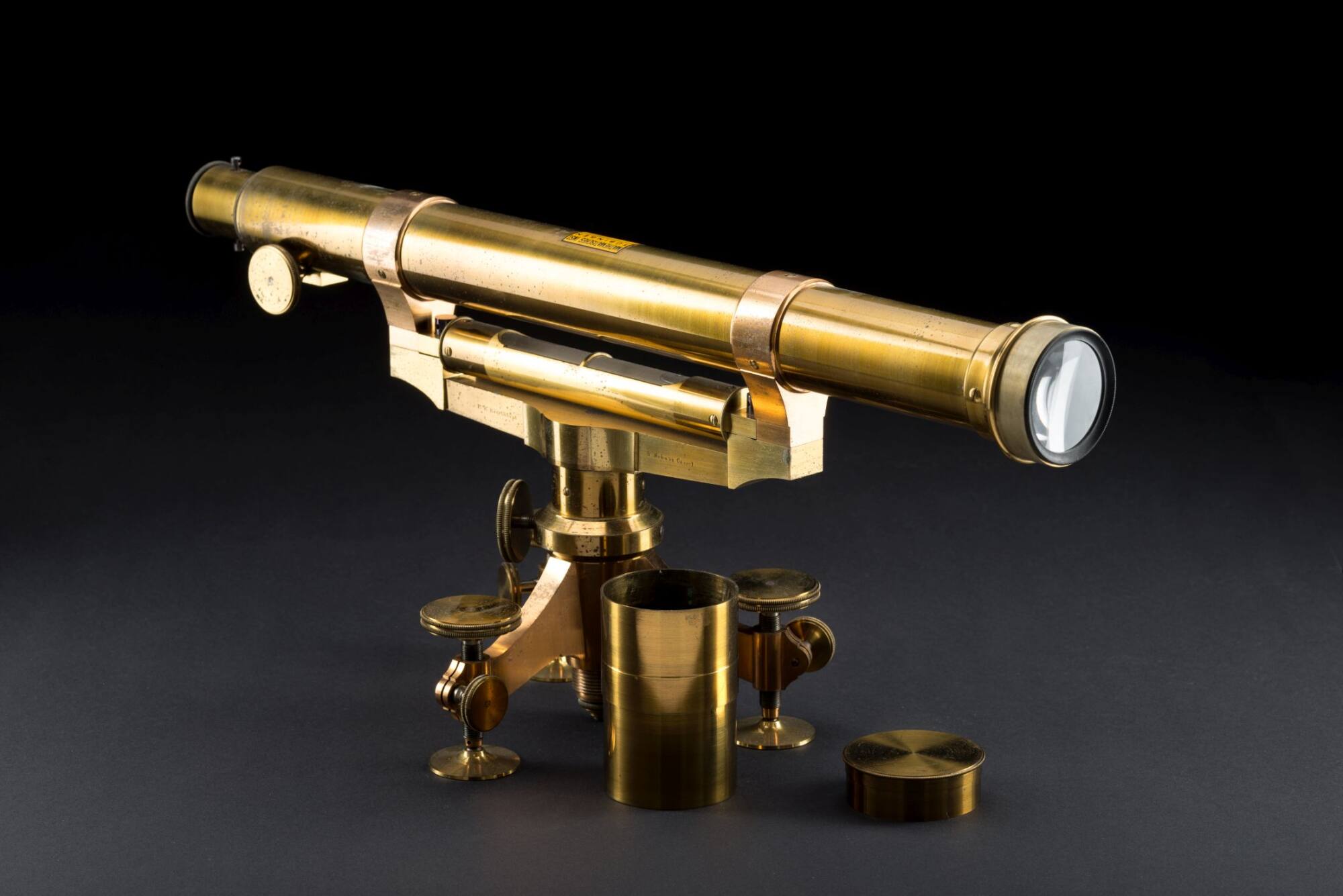 DescriptionNivellier-Instrument mit Stativ und verschließbaren Kasten der Firma "F. W. Breithaupt & Sohn". Dieser Firmenname ergänzt um dem Produktionsort "Cassel" ist auf dem Nivellier-Instrument mit der Nummer "619" eingraviert. Im Jahr 1868 stellte die Firma das 1.000 Nivellier-Instrument her.
