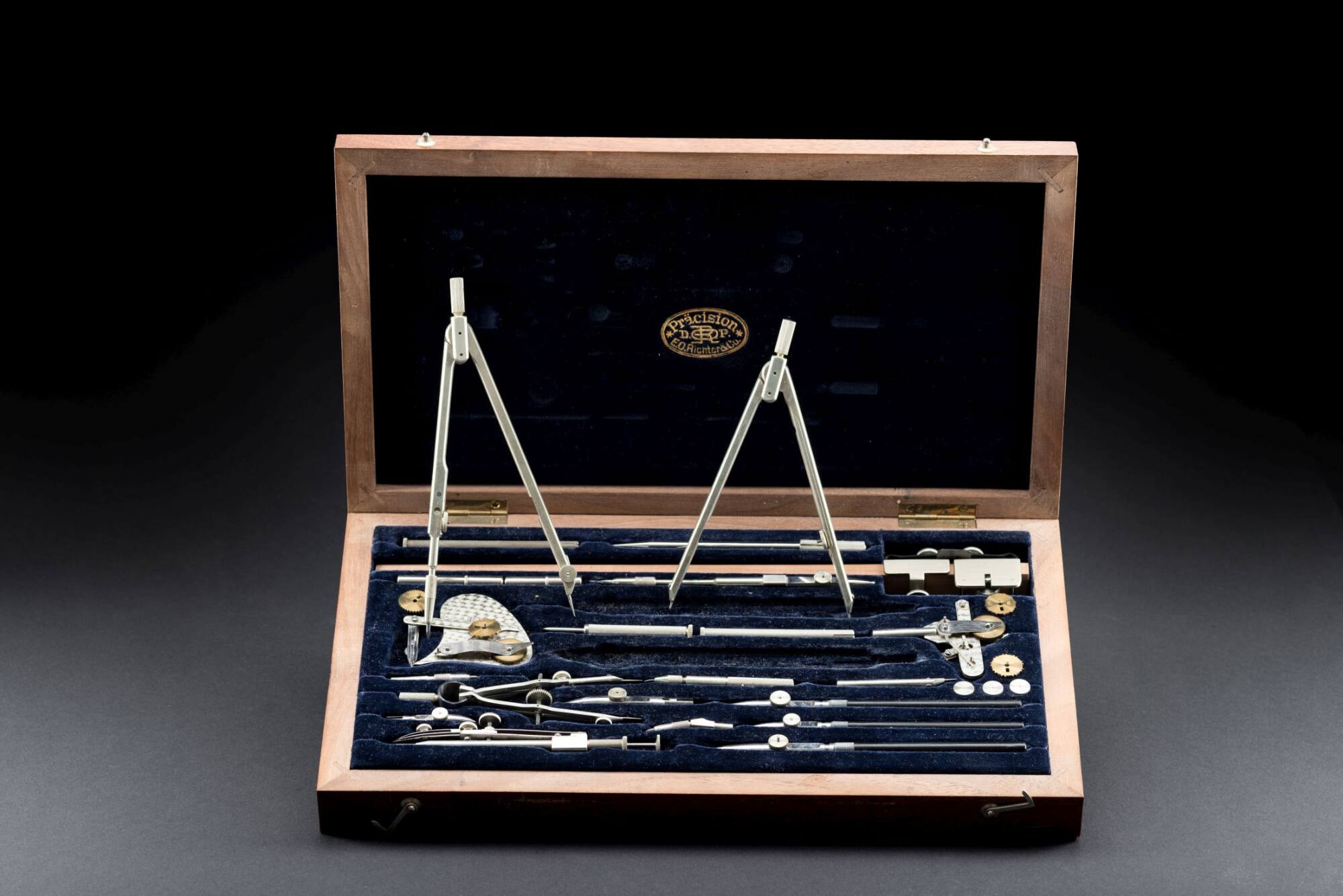 Ein großes Reißzeug (Präzision E. O. Richter). Preis 923.– M.