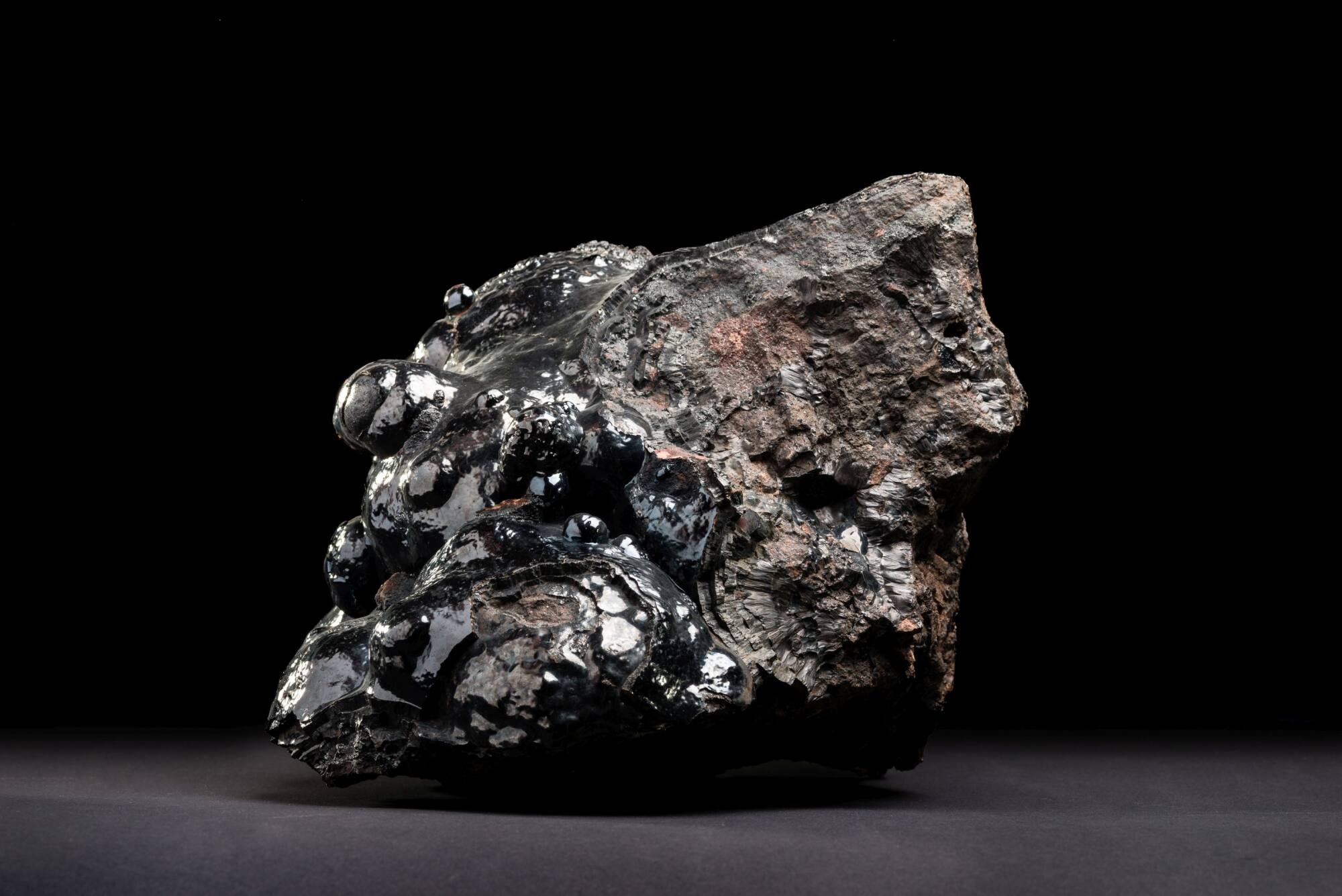 DescriptionDer Limonit ist die Bezeichung für ein Gemenge verschiedener Eisenhydroxit-Minerale. Er entsteht bei der Verwitterung von eisenreichen Mineralen an der Erdoberfläche oder seltener auch in von Wasser durchflossenen Spalten, wie dieses Stück aus Neuenbürg im Schwarzwald.MediumStein