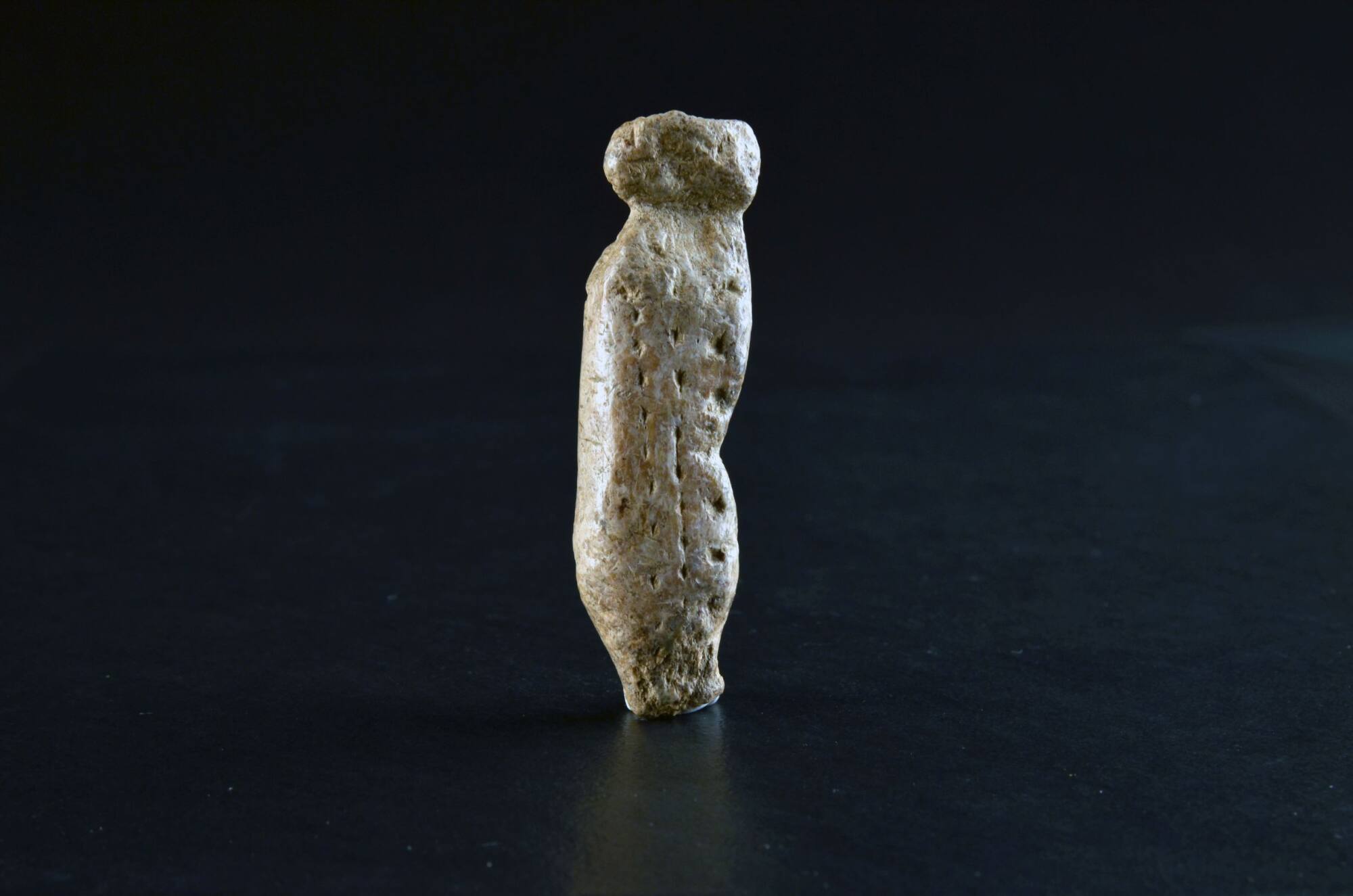 DescriptionDie Schnitzerei mit einer kugeligen Verdickung an einem Ende und einem EInzug im Bereich der Taille wird als sogenannte anthropomorphe Figur gedeutet.Auch von anderen Fundstellen der Schwäbischen Alb und Niederösterreichs kennt man aus dieser Zeit Darstellungen von Menschen und Mischwesen, so zum Beispiel die Venus vom Hohle Fels.