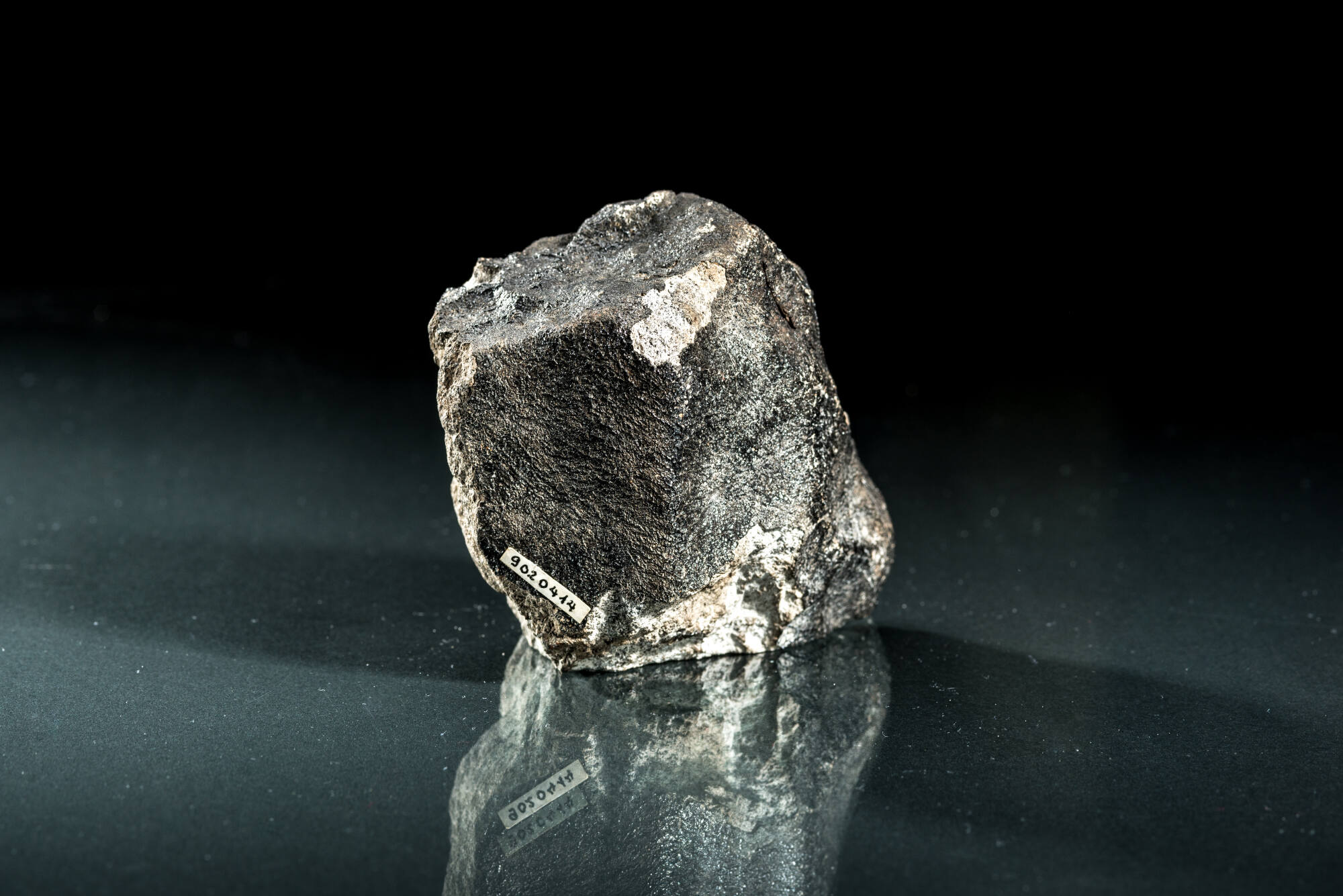 Ophitisches Gefüge: In Zwickeln zwischen Plagioklas-Leisten Hypersthen und Pigeonit und als jüngste Bildungen Quarz, Troilit und Ilmenit.