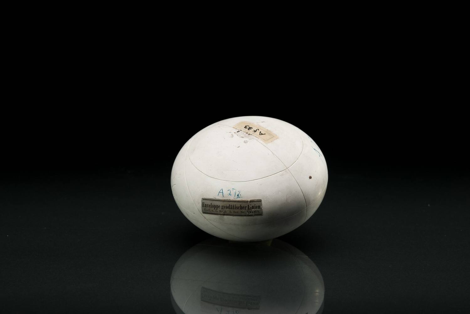 DescriptionSphäroid (abgeglattetes Rotationsellipsoid) mit geodätischen Linien und Enveloppen solcher, Brill, Serie 5, Nr. 7b, Preis 6,50 M.(Inventar des Mathematischen Seminars der Universität Tübingen, 1933, S. 52–53.)