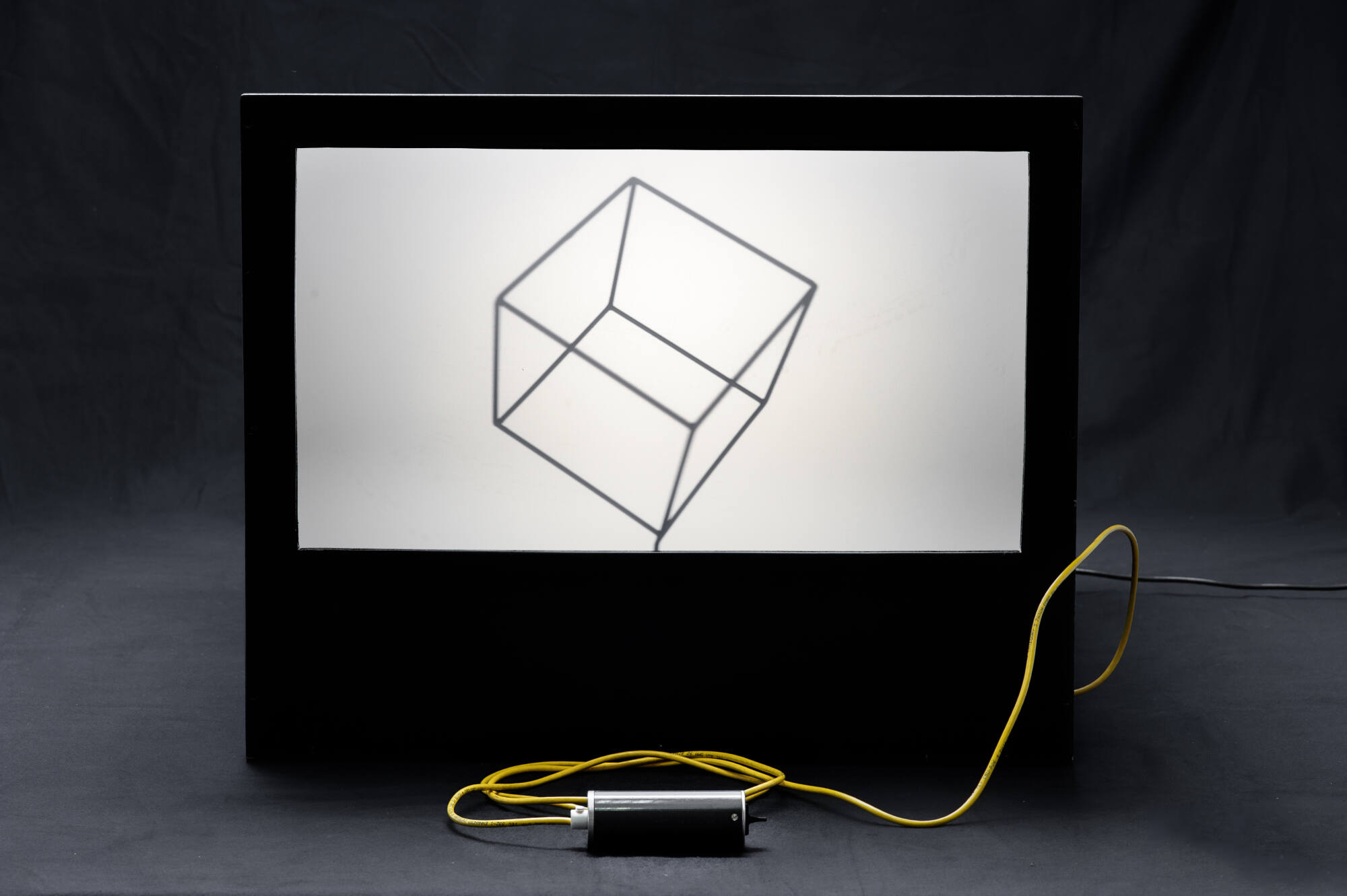 DescriptionDieser Projektor wird elektrisch betrieben. Er besteht aus einem Holzkasten, einem Motor mit rotierender Achse, einer Leinwand (Mattscheibe) und einer Beleuchtungsvorrichtung. Funktion: Ein Drahtgitterobjekt wird auf die Achse gesteckt und anschließend das Gerät eingeschaltet. Daraufhin rotiert das Modell und es enstehen optische Täuschungen. So wird z.B ein Würfel (mit exakt gleichen Seitenlängen) im Auge des Betrachters zu einer Art dreidimensionalen Trapezoid, vergleichbar mit der Form einer Taste auf einer Computertastatur. Es sind mehrere Drahtgittermodelle vorhanden (ca. 10 Stück). (Original um 1913) Wie nehme ich räumliche gebilde wahr?