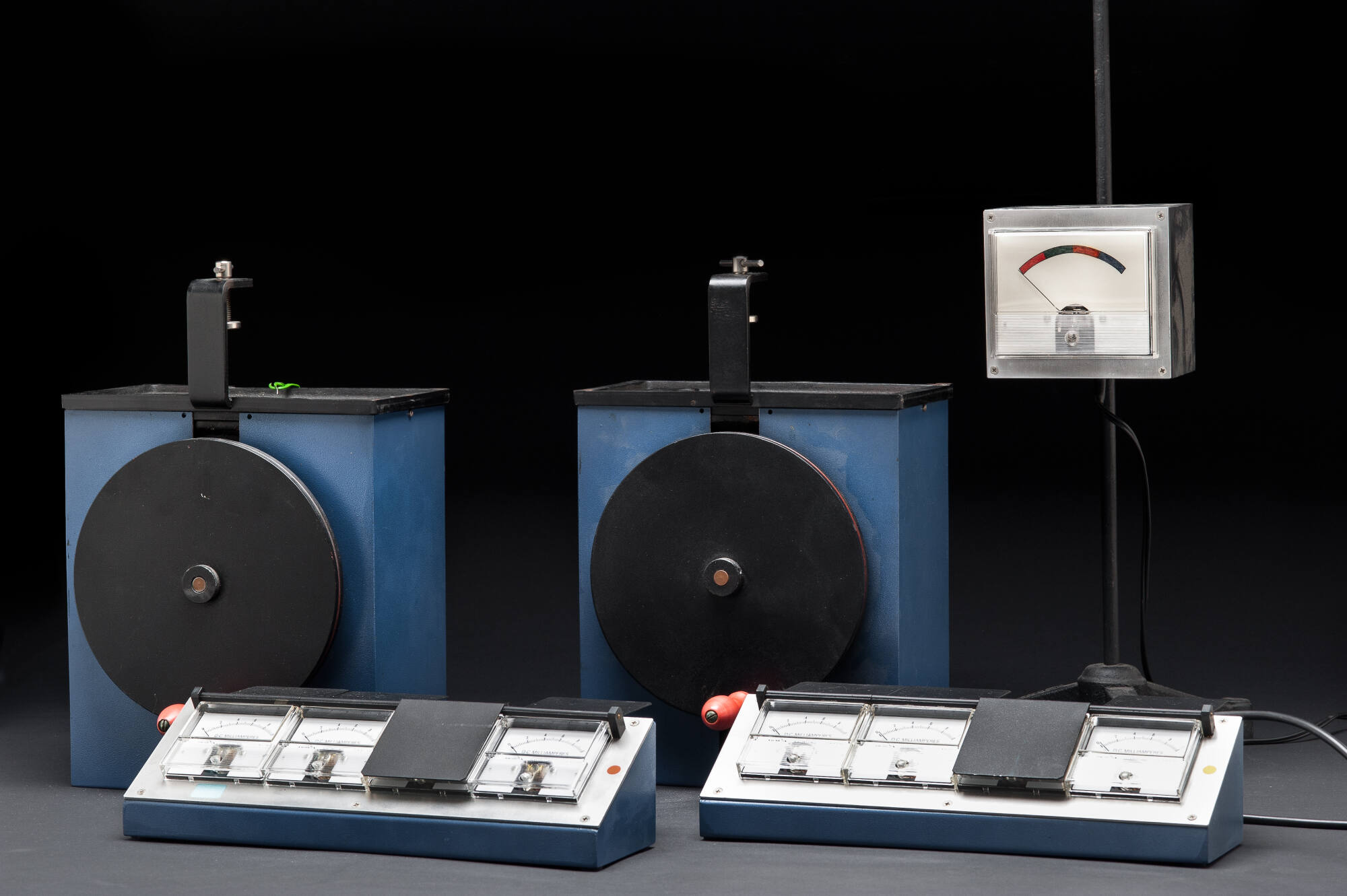 DescriptionDieses Gerät bestand ursprünglich aus vier Kurbeln mit Bremse (vergleichbar mit einem Hometrainer). Der Widerstand ist regulierbar. Außerdem gehören eine 4er Anzeige mit Zeigern sowie ein großes Zeigermessgerät zum Versuchsobjekt. Wieso sollte man immer einen Schwächling im Team haben?