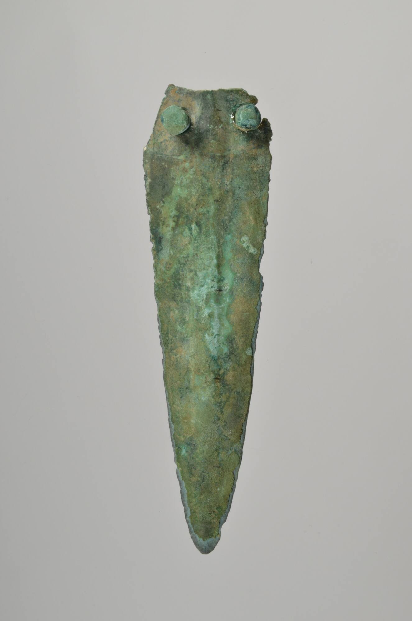 DescriptionDer Dolch stammt aus Grab fünf eines Grabhügels mit sieben, nach Osten gerichteten Gräbern von Erwachsenen.DimensionsLänge: 10,6 cm