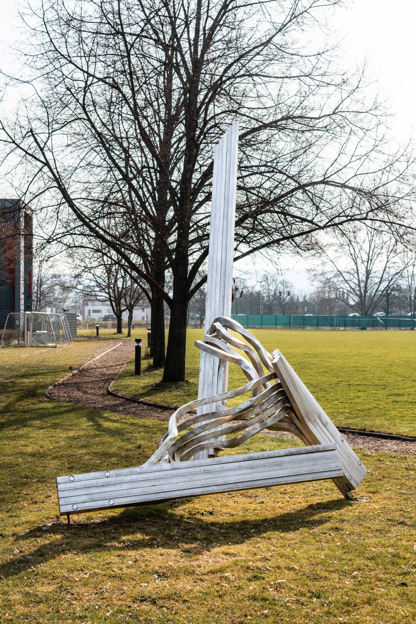 DescriptionReinhard Scherer, ein Künstler, der bevorzugt mit Stahl arbeitet, bündelt zeitgleich Raum und Energie. Stahlstäbe, die in vielfältiger Weise verformt sind, zeugen von heftiger Gestik. Als Ausdruck von Aktivität und Stillstand zugleich, befindet sich die "Aktion" am Sportinstitut der Universität am genau richtigen Platz. Standort: Institut für Sportwissenschaften, Alberstraße 27