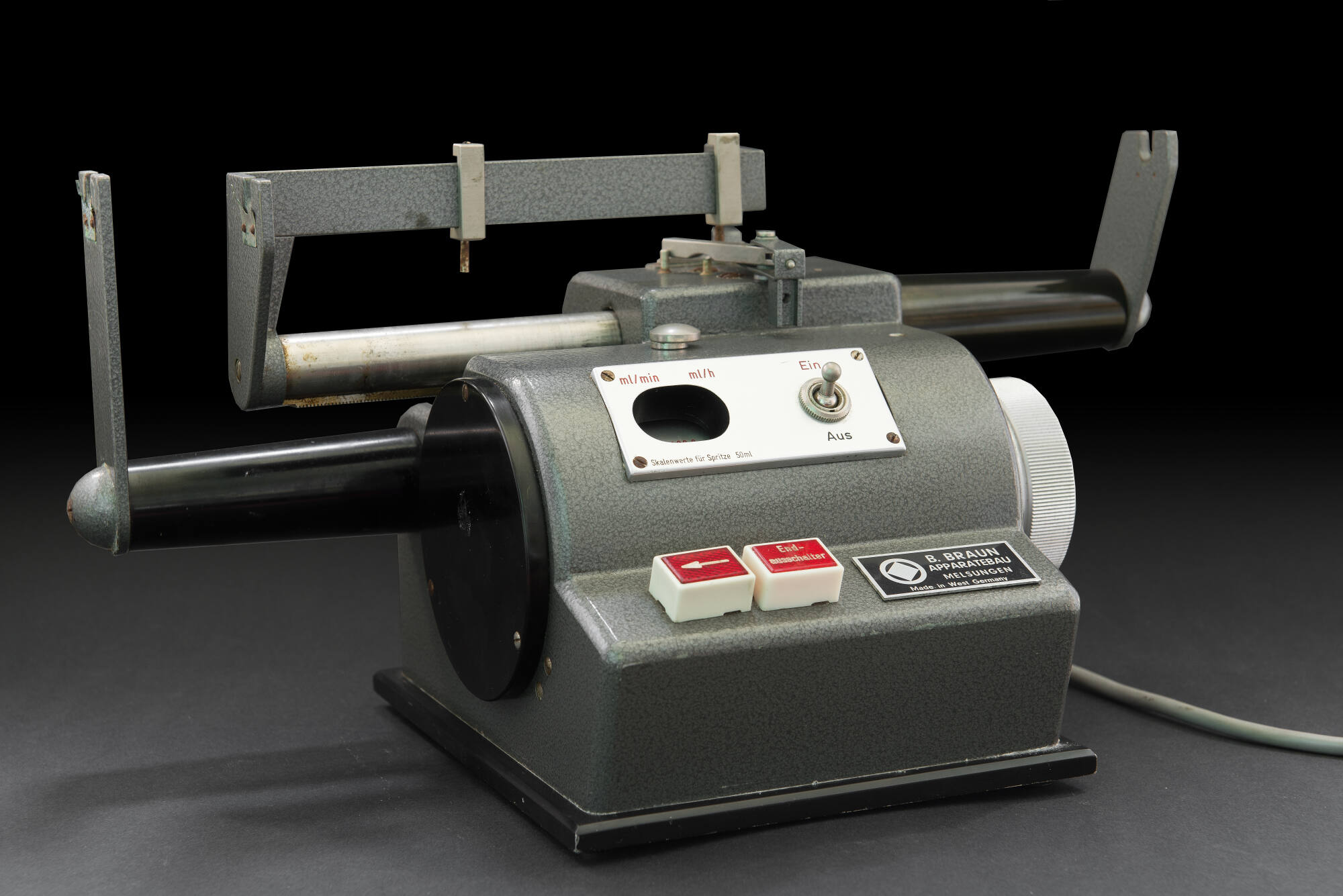 DescriptionDie Sammlung des Medizintechnischen Servicezentrums beherbergt verschiedene historische Apparaturen, die in den 1950er und 1960er Jahren im Universitätsklinikum zum Einsatz kamen. Der Schwerpunkt liegt auf Laborgeräten, EKG-Schreibern, Defibrillatoren, Blutzuckermessgeräten sowie Geräten aus der Infusionstechnik.Object numberMUT-Wg-1270
