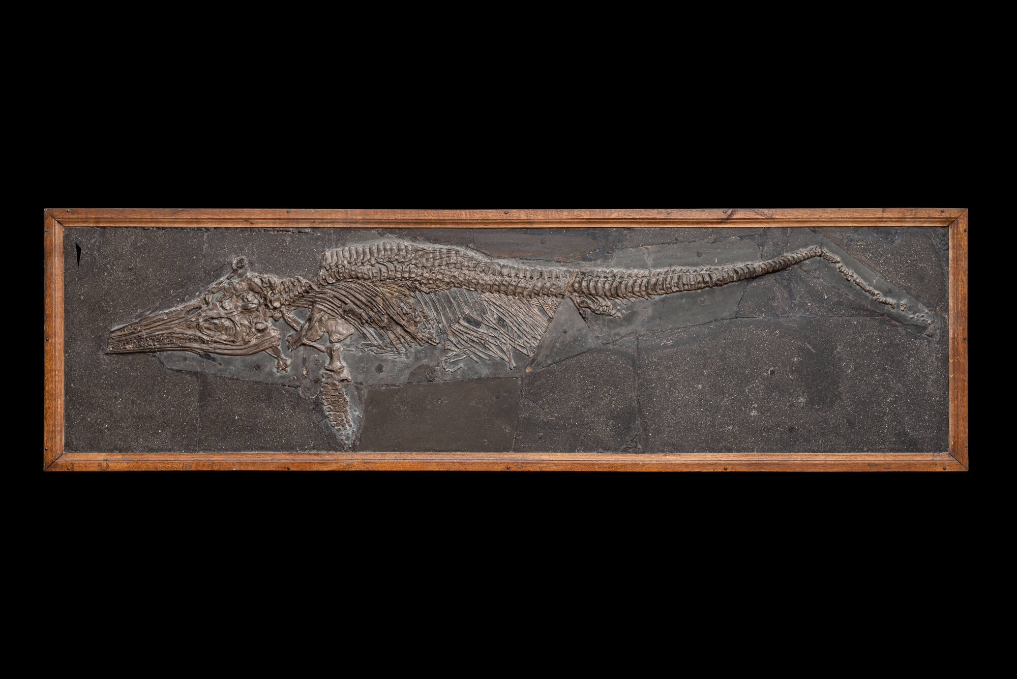 DescriptionStenopterygius triscissus (QUENSTEDT 1856) (Reptilia, Ichthyosauria); Unterer Jura, Unteres Toarcium, Posidonienschiefer-Formation (Lias ɛ II,10), 182 Millionen Jahre; Ohmden, Landkreis Esslingen, Baden Württemberg; 1873 Ankauf bei Christoph Fleck durch Friedrich August Quenstedt; Inv.-Nr. GPIT-PV-30040.Object numberGEO-Ps-GPIT-PV-30040