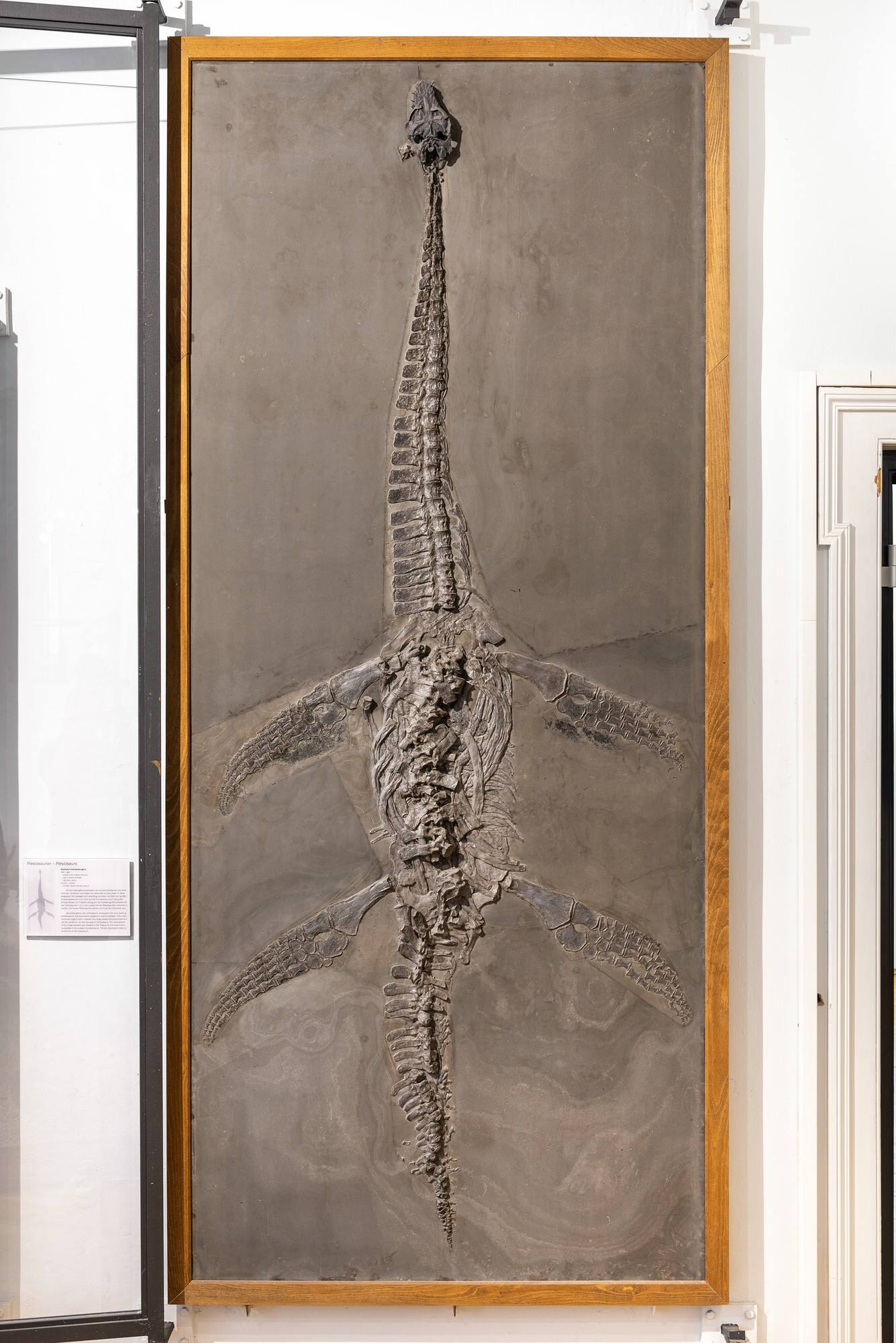DescriptionMicrocleidus brachypterygius (VON HUENE 1923), syn.: „Hydrorion”, „Plesiosaurus” brachypterygius (Reptilia, Sauropterygia, Plesiosauria); Unterer Jura, Unteres Toarcium, Posidonienschiefer-Formation (Lias ε II, Unterer Schiefer), 182 Millionen Jahre; Ohmden, Landkreis Esslingen, Baden-Württemberg; 1922 ausgegraben von Bernhard Hauff d.Ä., Ankauf von Hauff im Jahr 1923; Inv.-Nr. GPIT-PV-30094 (syn. PV 18971, GPIT/477/1/1, GPIT/RE/9428).Object numberGEO-Ps-GPIT-PV-30094