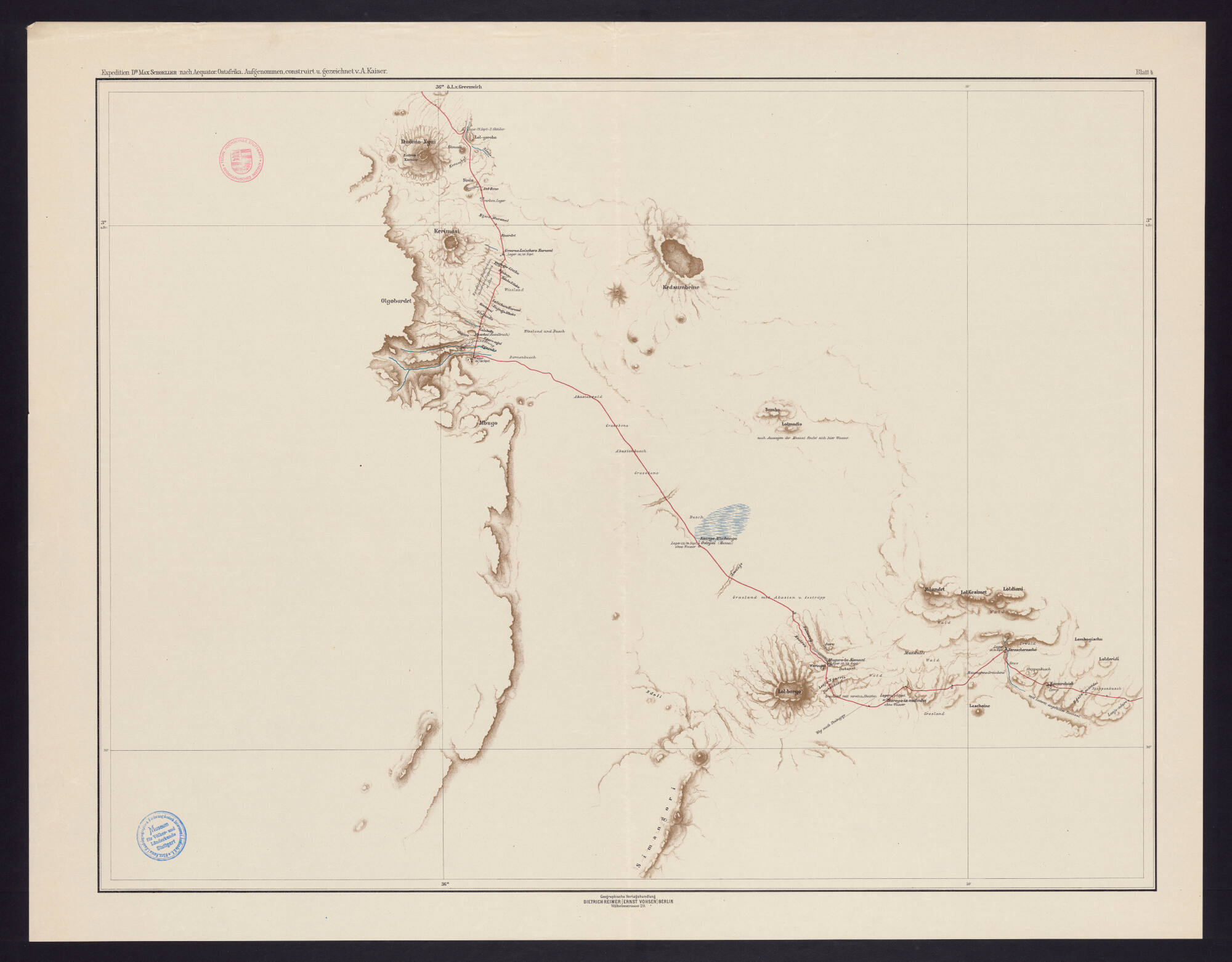 Reiseroute der Expedition Dr. Max Schoeller nach Äquatorial-Ostafrika: Mbugo (Blatt 4)