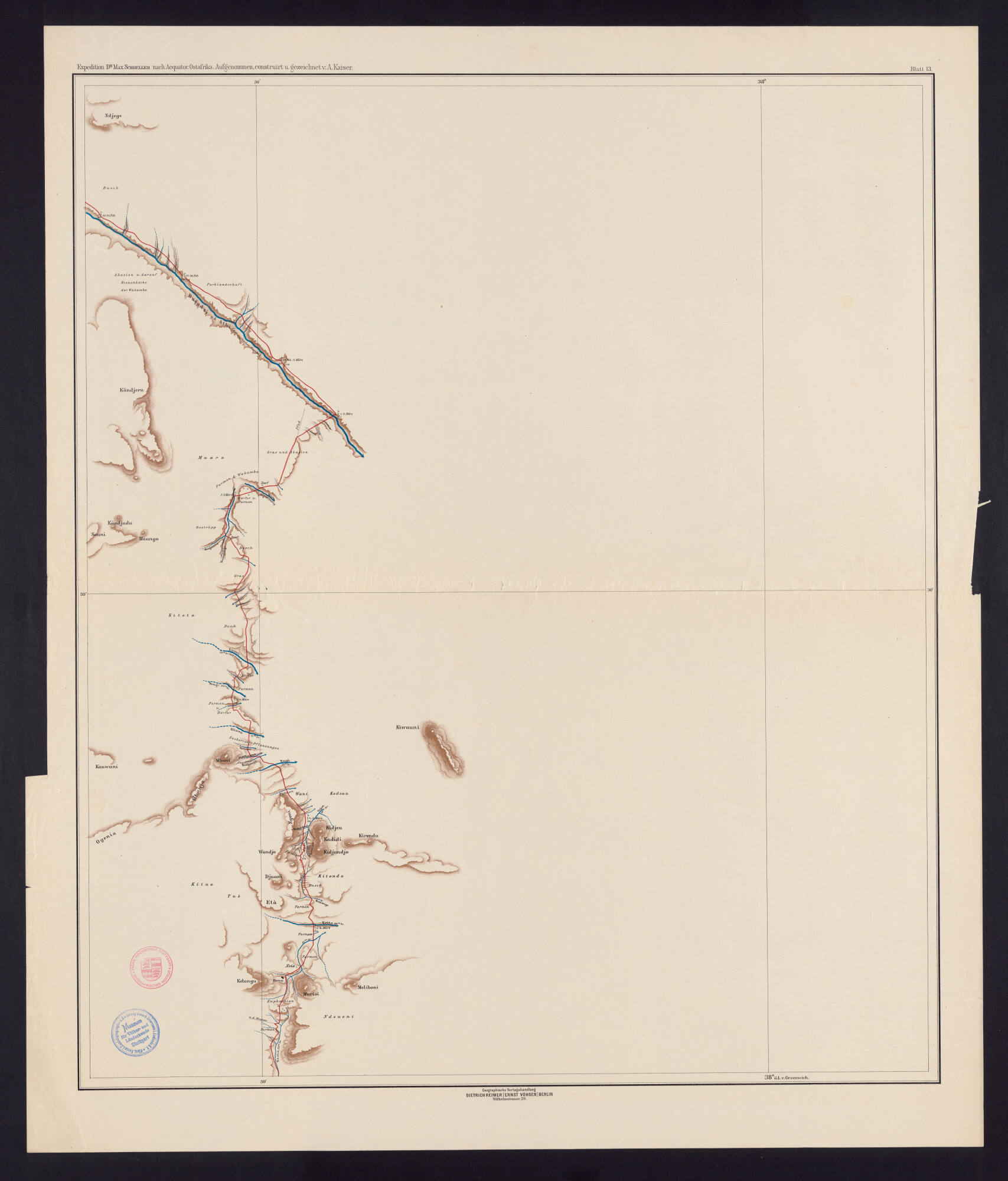 Reiseroute der Expedition Dr. Max Schoeller nach Äquatorial-Ostafrika (Blatt 13)